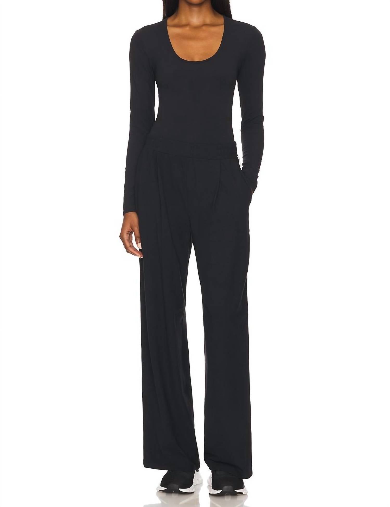 Elevate your layering game with the Airweight Scoop Neck Bodysuit by SPLITS59, a must-have in solid black for any wardrobe. This long sleeve bodysuit is crafted from a soft, lightweight jersey fabric composed of 81% nylon and 19% spandex, ensuring comfort and flexibility. It features a scoop neckline and a practical snap gusset for easy wearing. Care is simple with machine washing, making it a convenient staple for any outfit.