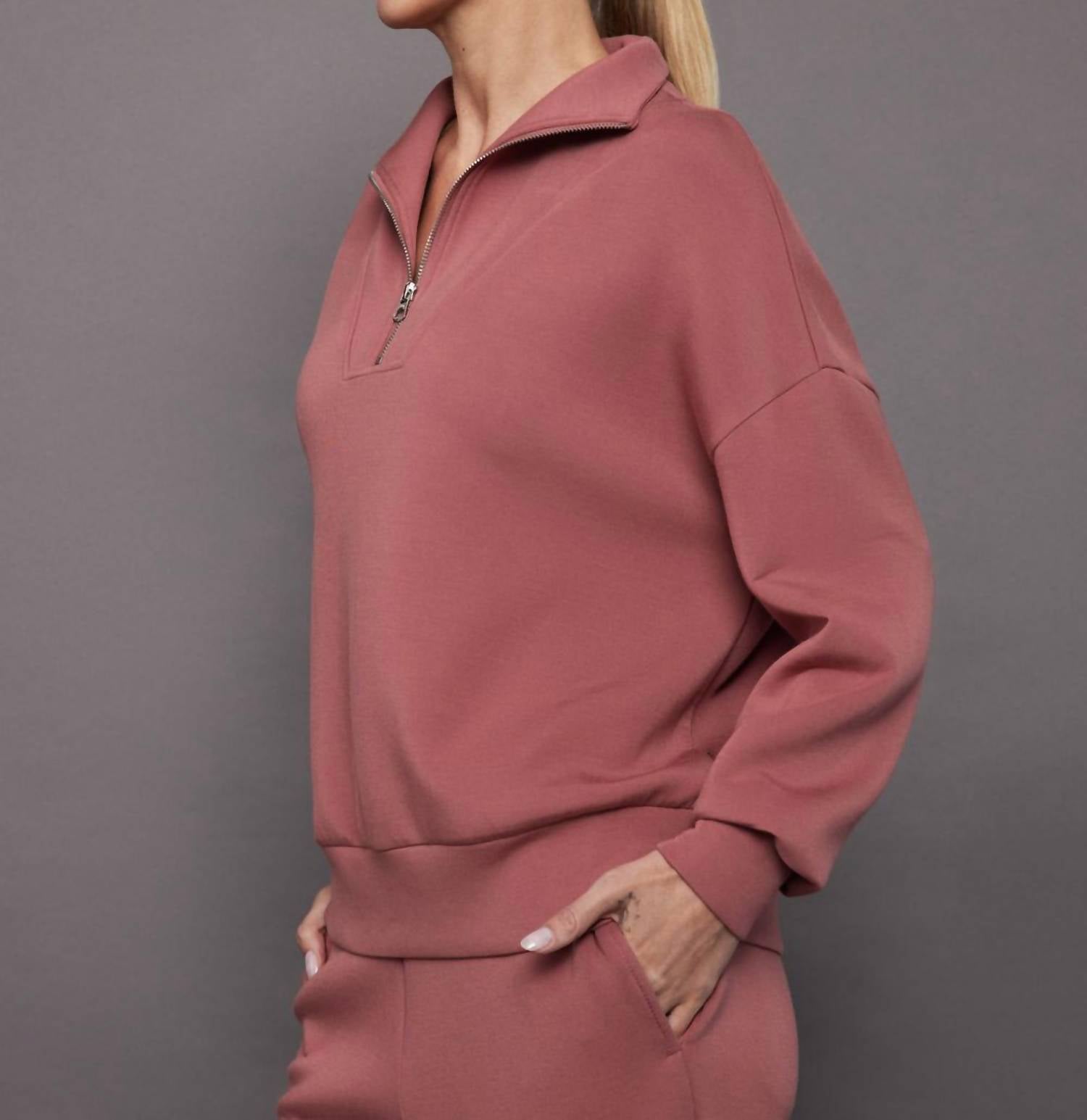 Discover the Hawley Half Zip Sweatshirt by VARLEY, a chic addition to your casual wardrobe in the elegant Withered Rose shade. This women's solid pattern piece features long sleeves and a versatile half-zip closure, perfect for holiday parties or preppy spring occasions. Crafted from a 72% Viscose, 23% Polyester, 5% Elastane, it offers both sophistication and coziness, complete with pockets for added convenience. Care for this garment by machine washing and laying it flat to dry.