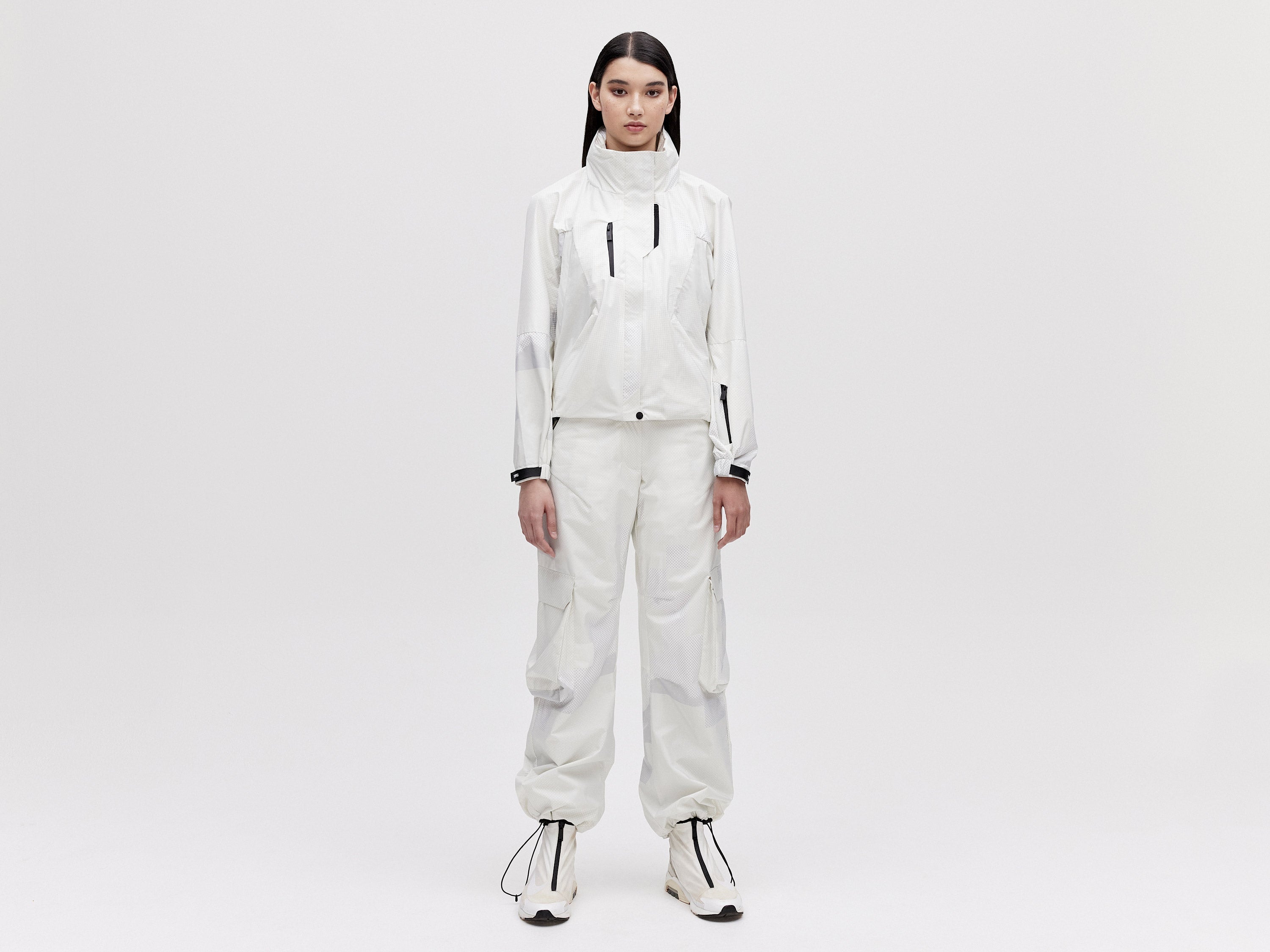 An ultra-lightweight all-weather shell jacket that is windproof, waterproof and highly breathable. It features strategically positioned ventilated zones and a high collar with a packable hood to protect you from sudden showers.