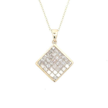 Discover the AAMIAA Stan Collection Natural Diamond Pendant, a stunning fine jewelry piece crafted from luxurious 14k yellow gold. Featuring 1.29-carat total weight princess-cut diamonds that radiate elegance, this pendant weighs 7.69 grams, showcasing its substantial feel and quality. This exquisite piece highlights natural diamonds expertly set for maximum brilliance and allure. A perfect addition to any jewelry collection, offering timeless sophistication and exceptional craftsmanship.