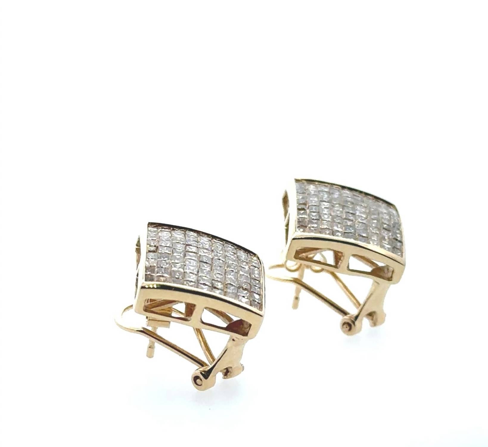 Introducing the Stan Collection 2.28 Ctw Natural Diamond Earrings by AAMIAA, a sophisticated choice for fine jewelry enthusiasts. Crafted from 14k Yellow Gold, these earrings feature stunning princess cut diamonds set to perfection. With a total weight of 5.15 grams, these earrings exude elegance and luxury.