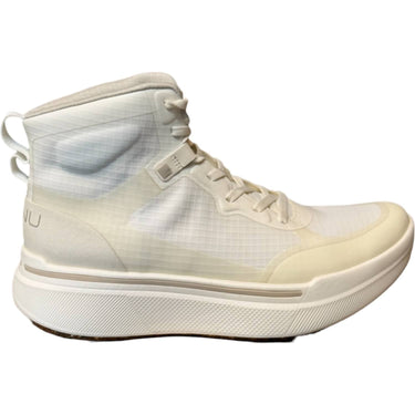 Step into the minimalist elegance of AHNU's Women's Sequence High Sneakers. These sneakers feature a clean, monofilament mesh upper in a crisp white, seamlessly blending comfort and style. Designed with a high-cut silhouette, these sneakers are equipped with a PEBA foam midsole and a forked carbon-fiber plate for exceptional rebound and responsiveness, complemented by rocker geometry for smooth transitions. Experience secure comfort with light padding, webbing lace-keepers, elastic gussets, and microfiber lace locks. Perfect for game day and spring outings, with their origin and care details not specified.