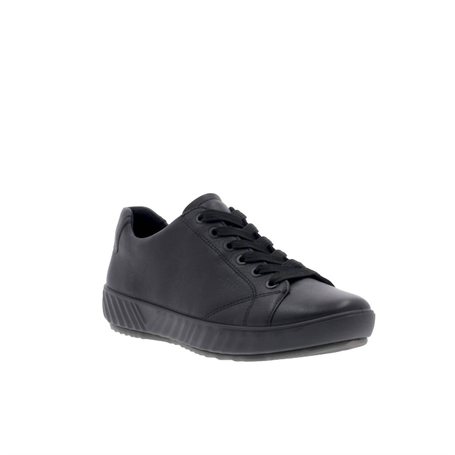 Cute, functional, and comfortable. These sneakers check all the boxes. Discover the Women's Alexandria Sneaker by Ara, your versatile companion for any occasion. Made from sleek, all-black leather, these sneakers offer ultimate comfort with a soft bamboo terry cloth lining and a removable footbed that provides heel stability, arch, and metatarsal support. The sneakers feature a flat heel under 1 inch and a round toe shape, perfect for streetwear, summer, and vacation travel. Embrace style and comfort effortlessly in these must-have sneakers.