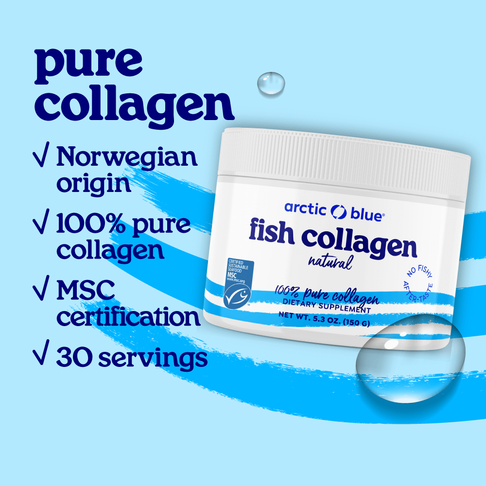 With no added flavor or sweetener | Contains only fish collagen peptides: > 95% protein | Dissolves well, even in cold drinks and yogurt | Has the strict MSC seal of approval