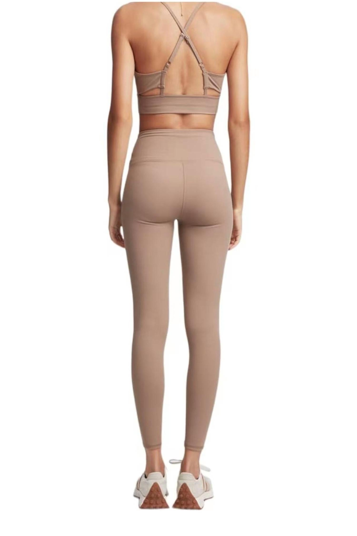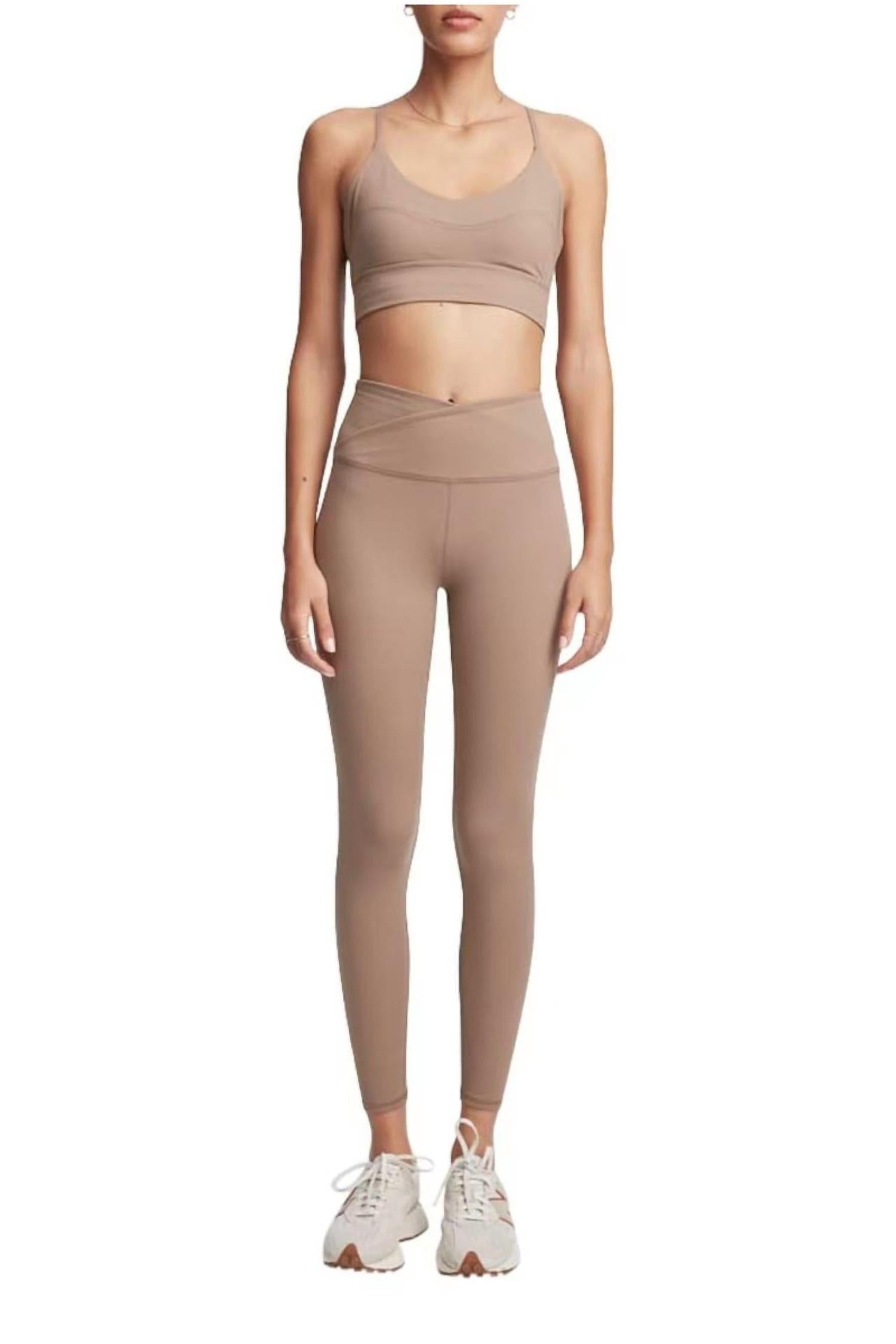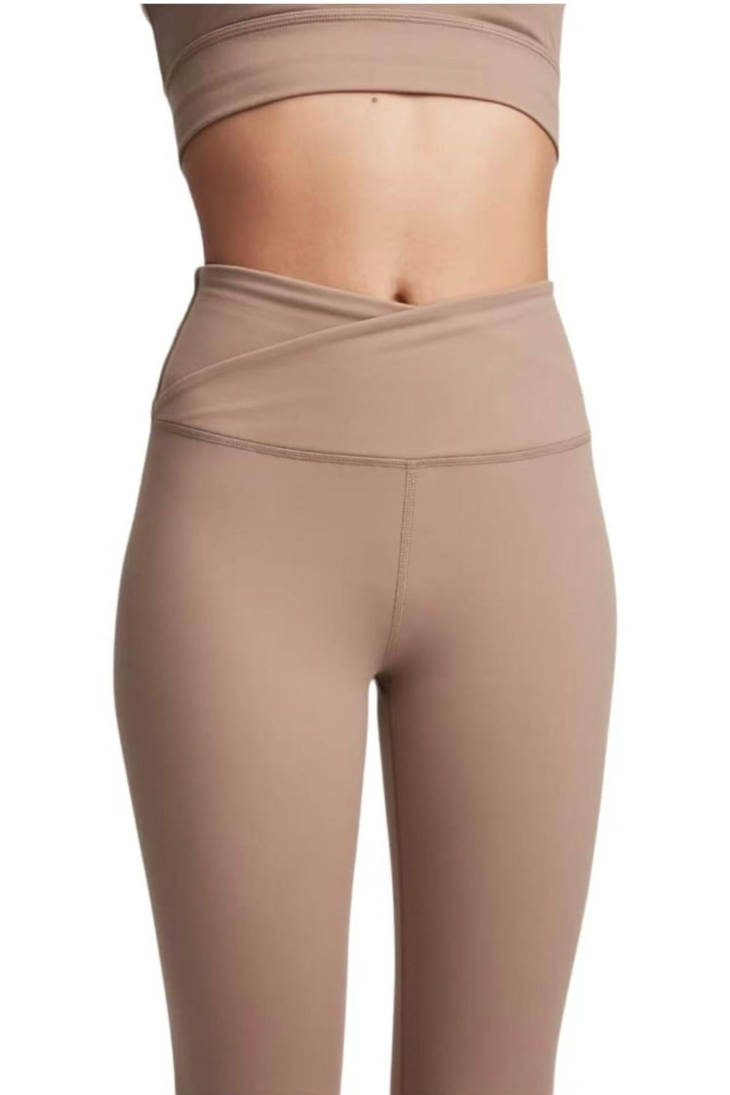 Discover the Rue Crossover Leggings by BANDIER, a staple for any activewear collection in a chic Nutmeg hue. Crafted with a high-rise crossover V-front panel, these leggings feature a slim fit and skinny leg design. Made from a moisture-wicking blend of 76% Nylon and 24% Lycra, they are ideal for intense workouts. Closure: Pull-on style. Care: Machine wash cold and tumble dry. These leggings boast a 29" inseam and are a perfect choice for fitness and workout routines.