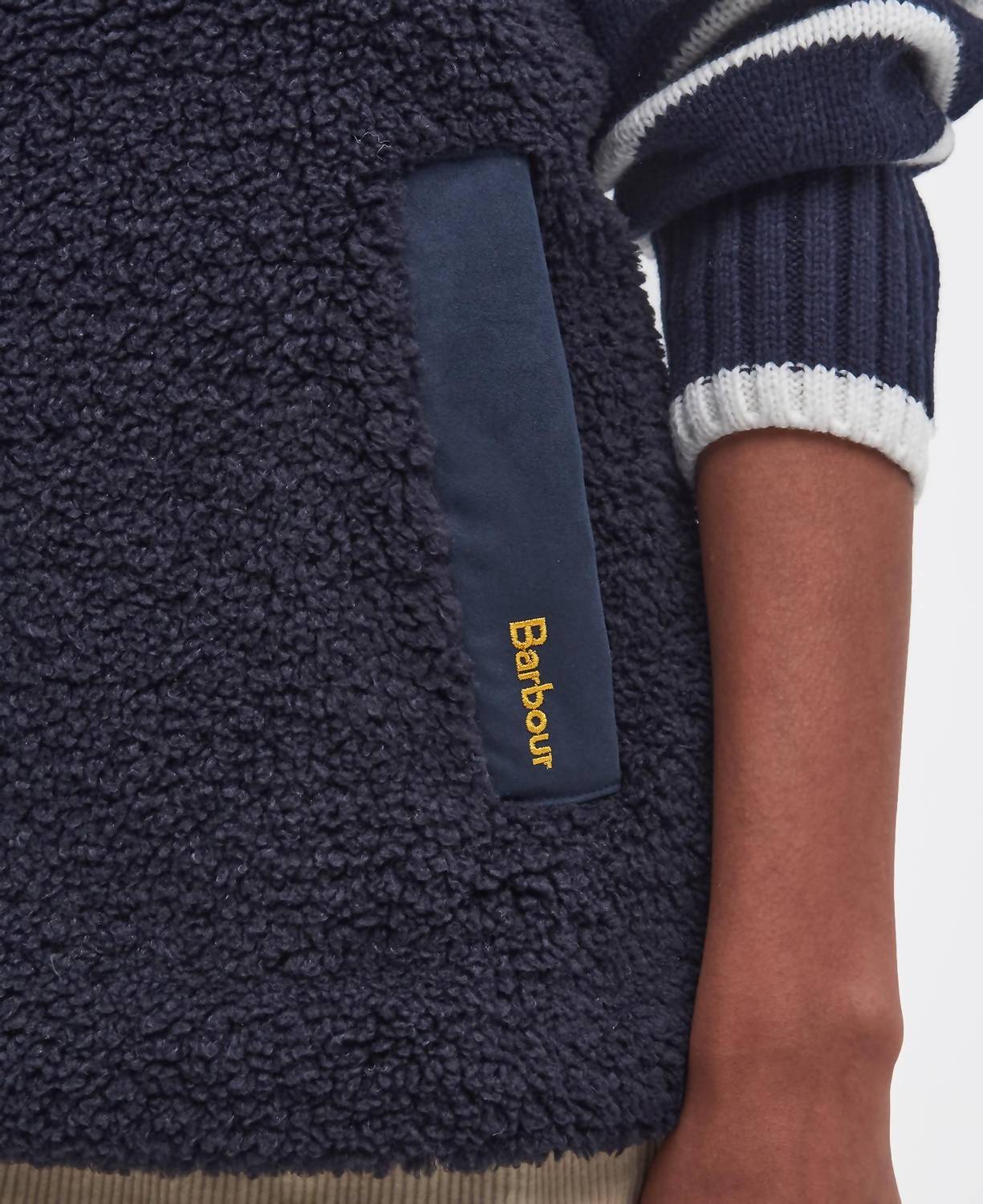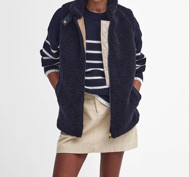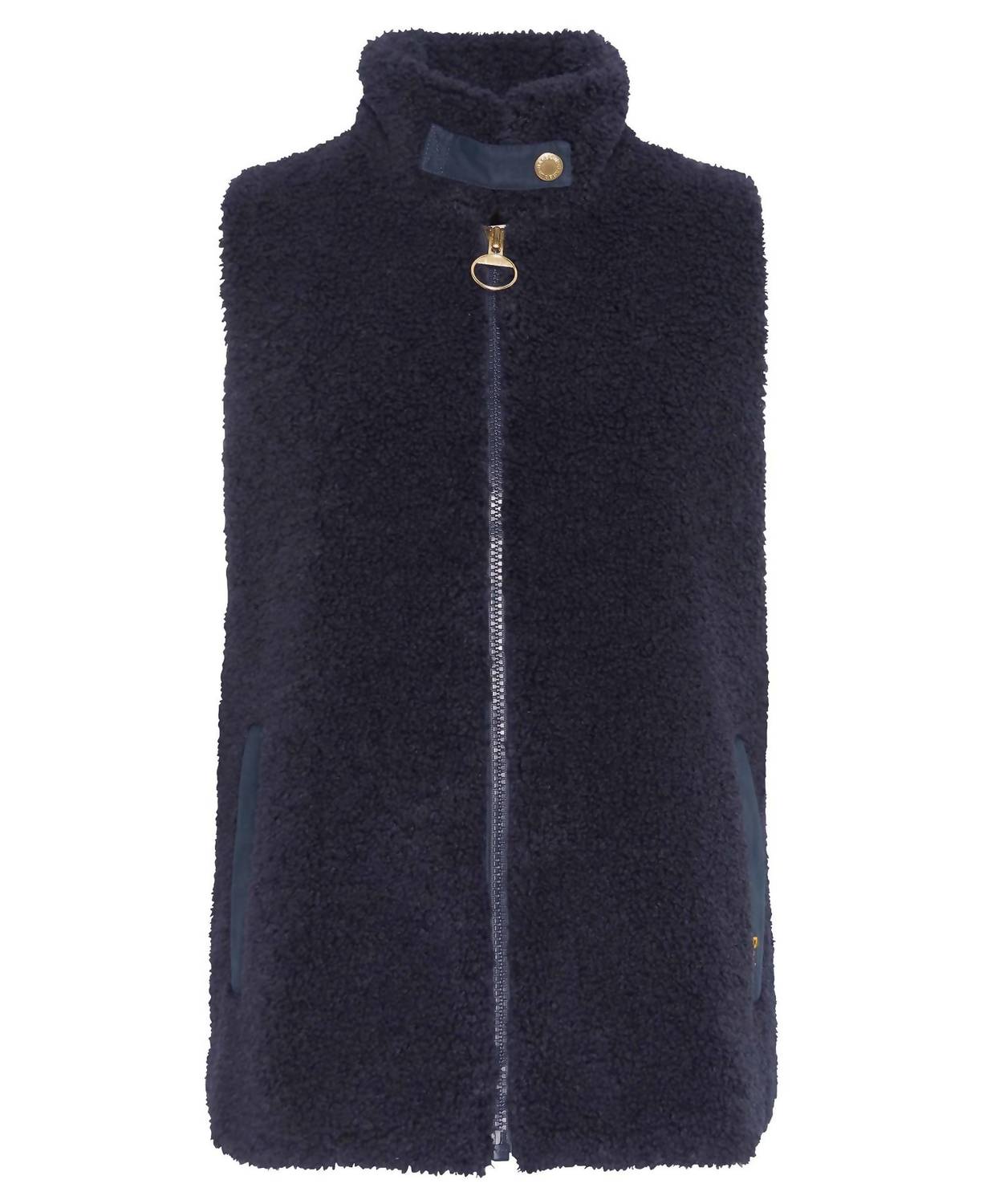 A vest so versatile you can mix and match it with almost any outfit and it will feel brand new every time. Introducing the Barbour Elisha Gilet Vest, a chic and functional choice for winter fashion in dark navy. This sleeveless vest, crafted entirely from 100% polyester, features a cosy sherpa teddy fabric with a funnel collar and contrasting throat tab. Complete with Barbour’s signature ring pull zip closure and convenient pockets, it’s perfect for layering over chunky knitwear or under a Barbour jacket. Care for this piece by machine washing at 30°C, and enjoy the branded finish that highlights Barbour's dedication to quality.