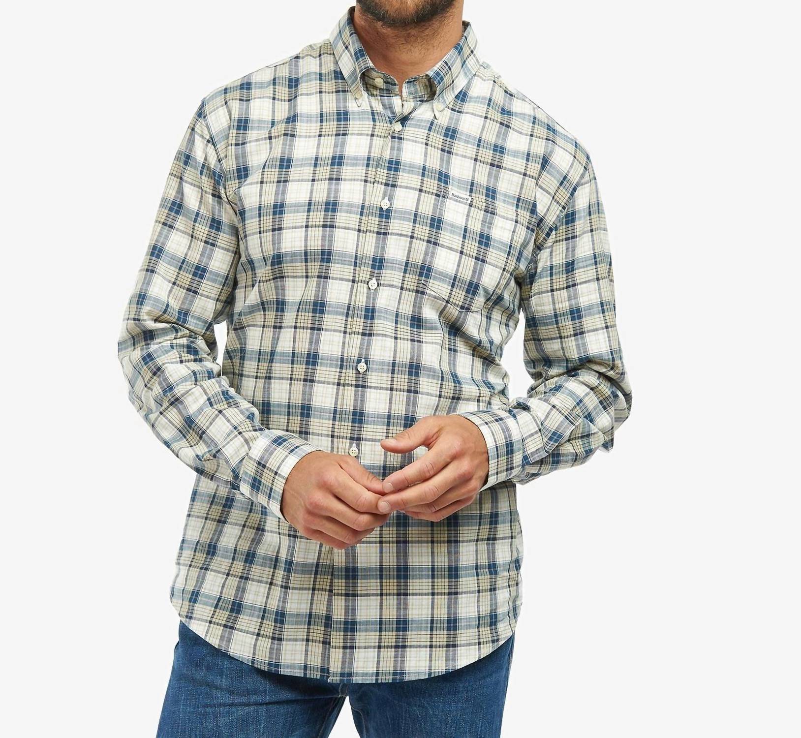 The Barbour Sadle Shirt features an all over highland check for a contemporary nod to Barbour's heritage. Crafted from 100% Cotton. Button down closure. Long sleeves. True to size. Comfortable and relaxed fit.