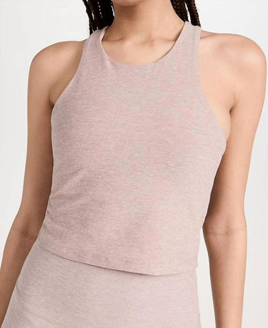 Experience the ultimate in comfort and style with the BEYOND YOGA Spacedye Focus Cropped Tank in Chai. This sleeveless tank, made from ultra-soft 87% Polyester, 13% Elastane, features a supportive built-in shelf bra and a chic racerback design to showcase your shoulders. Proudly made in the USA, it comes in a flattering cropped length and has a convenient pull-on closure. Perfect for fitness or leisure, this piece is machine washable and should be line dried for easy care.
