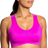 This sports bra in vibrant Magenta/Heliotrope features a crossback pullover design, eliminating the need for zips or hooks while ensuring a secure fit with its built-in cups. Crafted in supportive DriLayer HorsePower fabric, it offers a sleek silhouette with smooth, chafe-free comfort thanks to its seamless integration and minimal seam construction. Hand wash and line dry for optimal lasting quality.