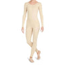 Form fitting and comfortable - this bodysuit check all of the boxes. Elevate your dance wardrobe with the Capezio Adult Long Sleeve Unitard in a classic nude shade. Crafted from a resilient 90% Nylon and 10% Spandex blend, this unitard offers a moderate scoop neck at both front and back, ensuring both style and comfort. This solid-patterned, pull-on piece boasts double-stitched seams for long-lasting durability, perfect for cold studio days. Recommended care involves a machine wash on a cold, delicate cycle, followed by hang drying.
