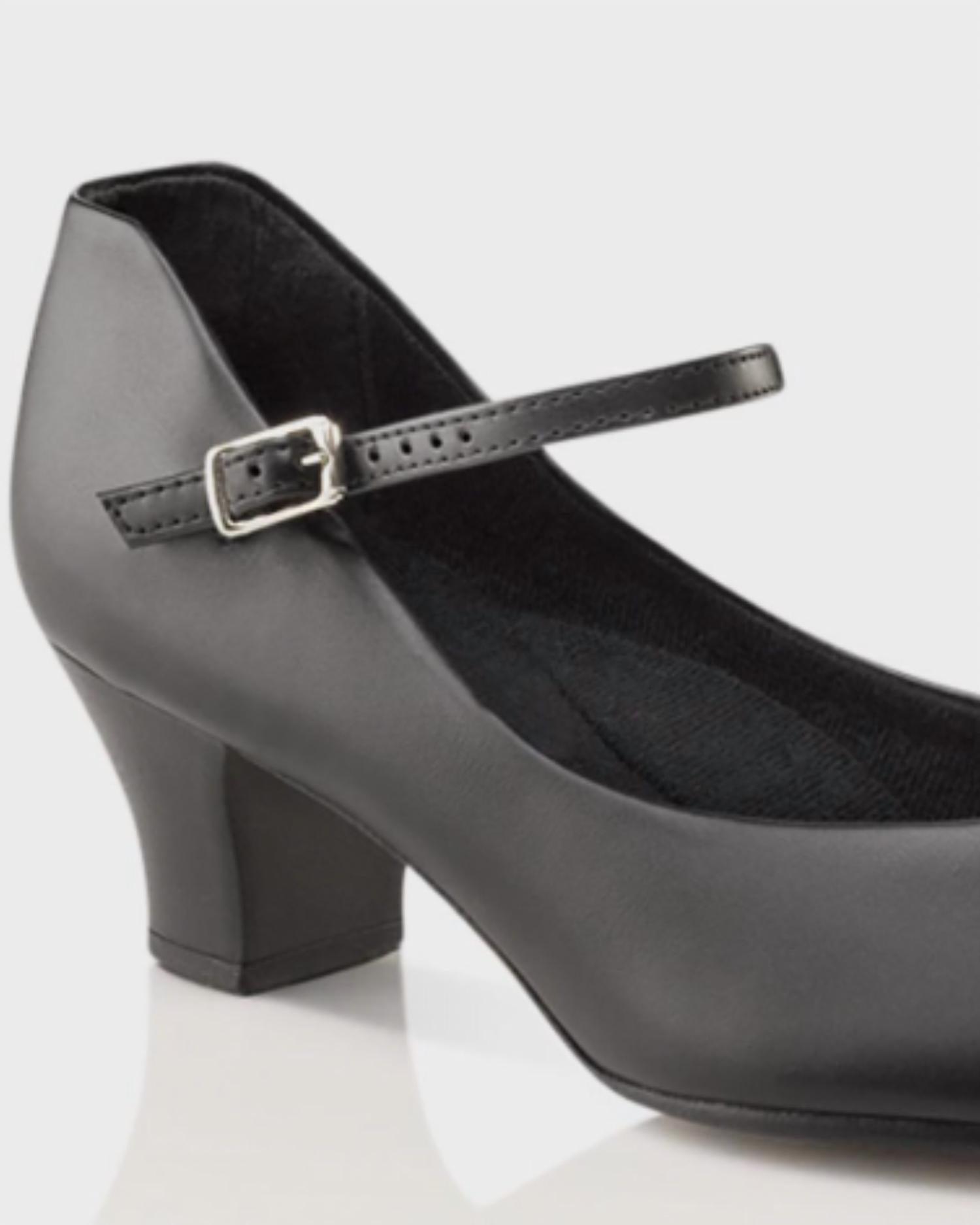 Step into the spotlight with the Capezio Women's Jr. Footlight Character Shoe in a rich caramel hue, a favorite among performers. This stylish shoe features a 1.5" block heel with a scored leather top lift to ensure stability, and a soft PU leather upper for a polished look. Designed for comfort, it boasts a foam padded footbed, moisture absorbent microfiber lining, and an Achilles notch for added ease. The slim leather buckle closure secures the fit, while the closed round toe and sides provide a classic character look. Ideal for shows, remember to start 1/2 size up from your street shoe size.