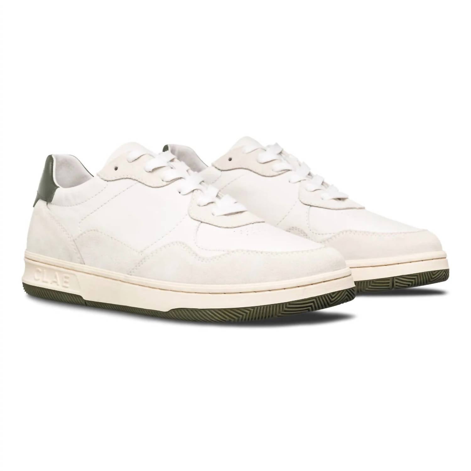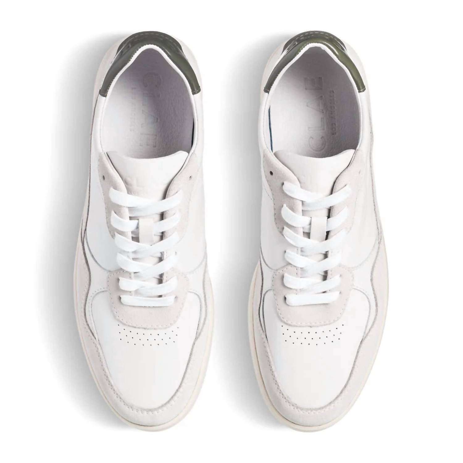 Experience the unique blend of skate culture and vintage automotive style with CLAE's Women's Elford Sneakers in White Olive. Made with premium Italian Nappa leathers and suede sourced from certified tanneries, these sneakers offer a luxurious feel, complemented by a leather and recycled polyester lining. Built for comfort and durability, the materials of this medium-width shoe will age beautifully over time. Designed with a round toe and a flat heel, these summer streetwear sneakers feature the Premium Court (PC) sole for optimized traction.