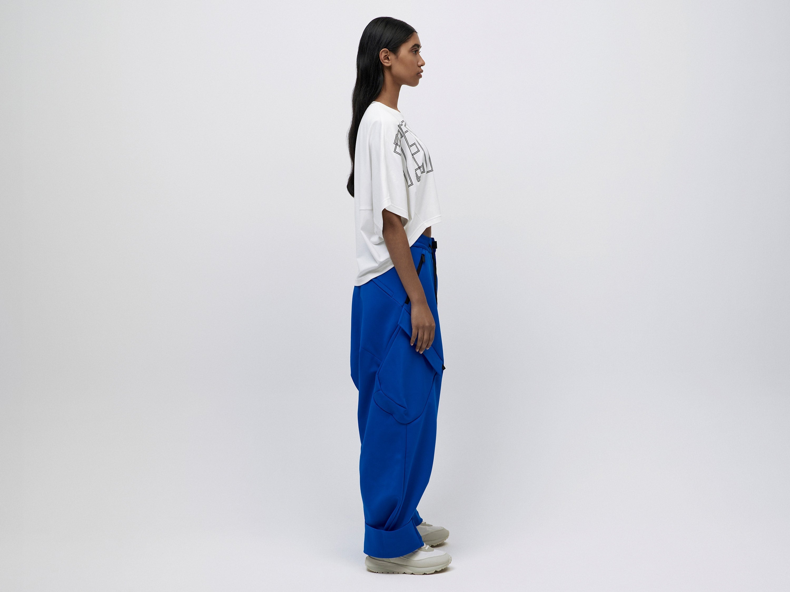 Our Cropped Tee combines fluid dropped sleeves, with a high/low hemline accentuating the neat front with the draped volume in the back. With its waisted front, this effortless crew neck t-shirt is an easy-fit essential crafted from luxurious organic cotton. Our "TEMPLA DECONSTRUCTED" print gives this playful t-shirt a graphic pop that allows for plenty of styling options all year round.