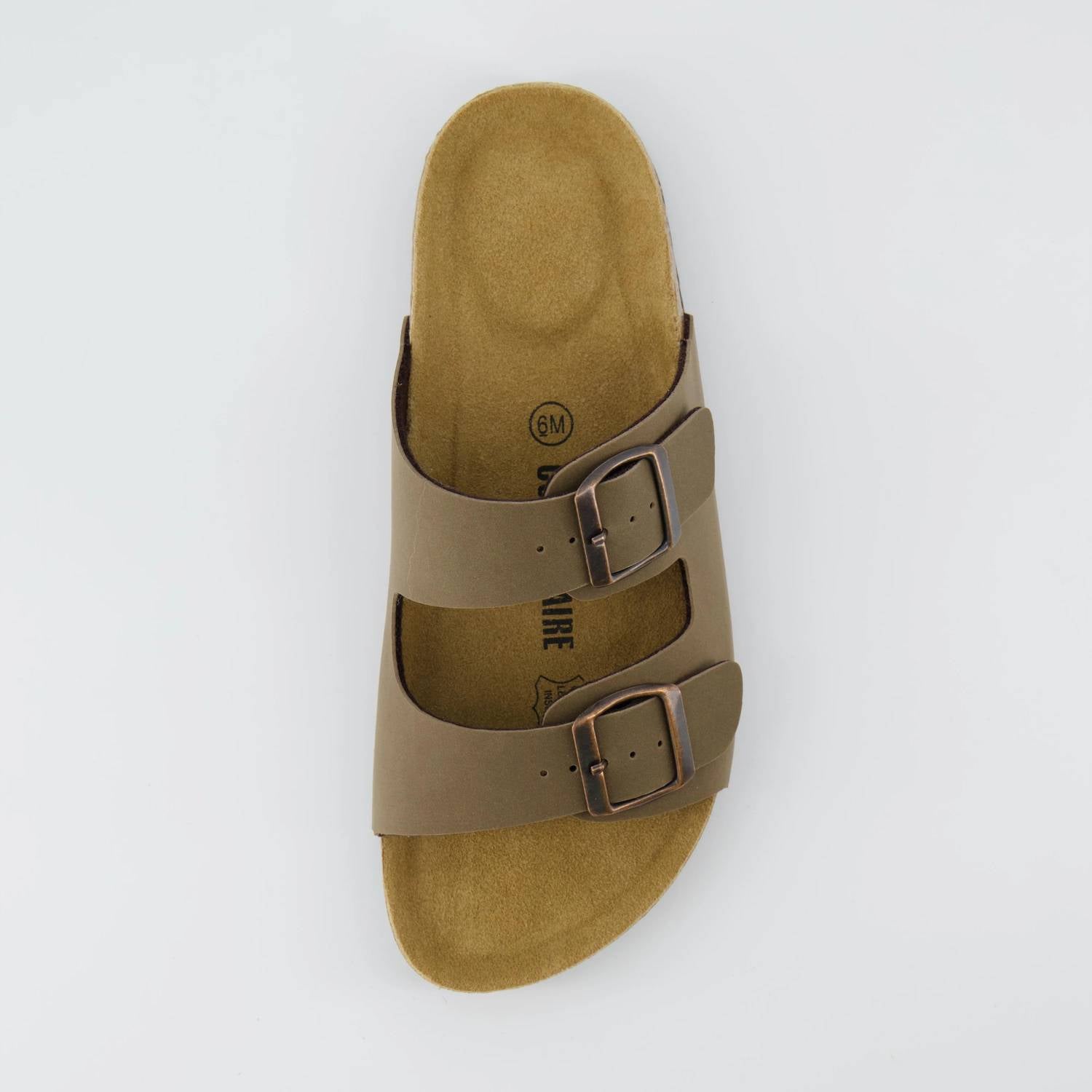 Experience ultimate comfort with the Women's Lane Cork Footbed Sandals by Cushionaire, perfect for summer strolls. These brown sandals feature an open toe design with a flat heel, crafted for adult women. Enjoy the luxurious feel of a fully cushioned genuine leather insole and adjustable straps for a customized fit, complemented by a soft vegan upper for all-day comfort. The flexible cork footbed and premium traction EVA outsole ensure durability and style combined.