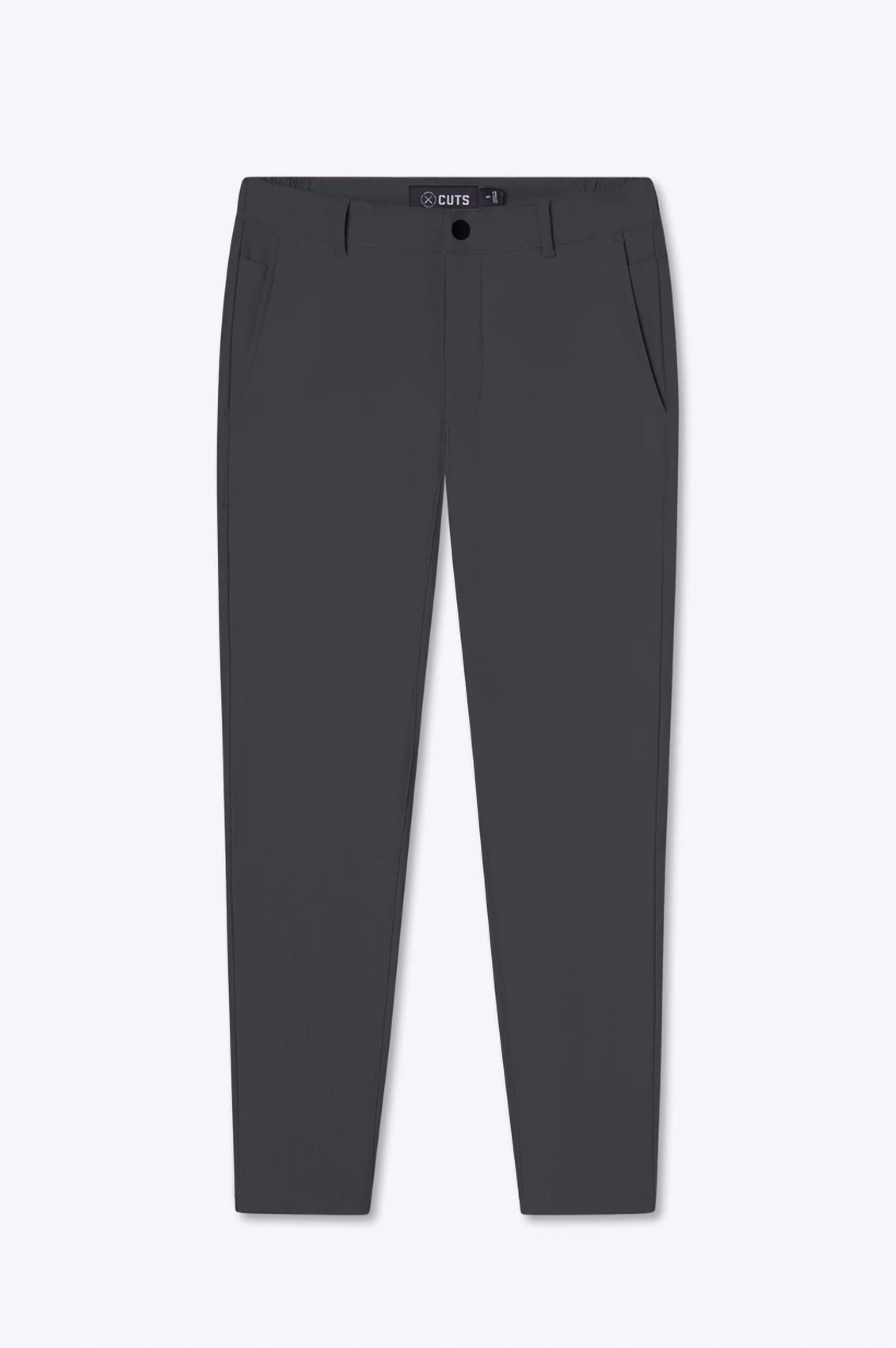 Modern jogger cuff with clean finish front and rear elastic. Side elastic at waistband. Snap closure with hook and eye and zippered fly. Gusset. One secure hidden zippered pocket. Direct X embroidery at calf. Two rear welt back pockets. Two on-seam hand pockets. One coin/key pocket. Belt loops. 100% polyester. 4-way knit. Machine wash cold. Wash with like colors. Tumble dry low heat. Do not iron. The jogger cuff is designed to sit above the ankle. Regular Inseam (inches) XS: 27, S: 27.5, M: 28, L: 28.5, XL: 29, XXL 29.5.