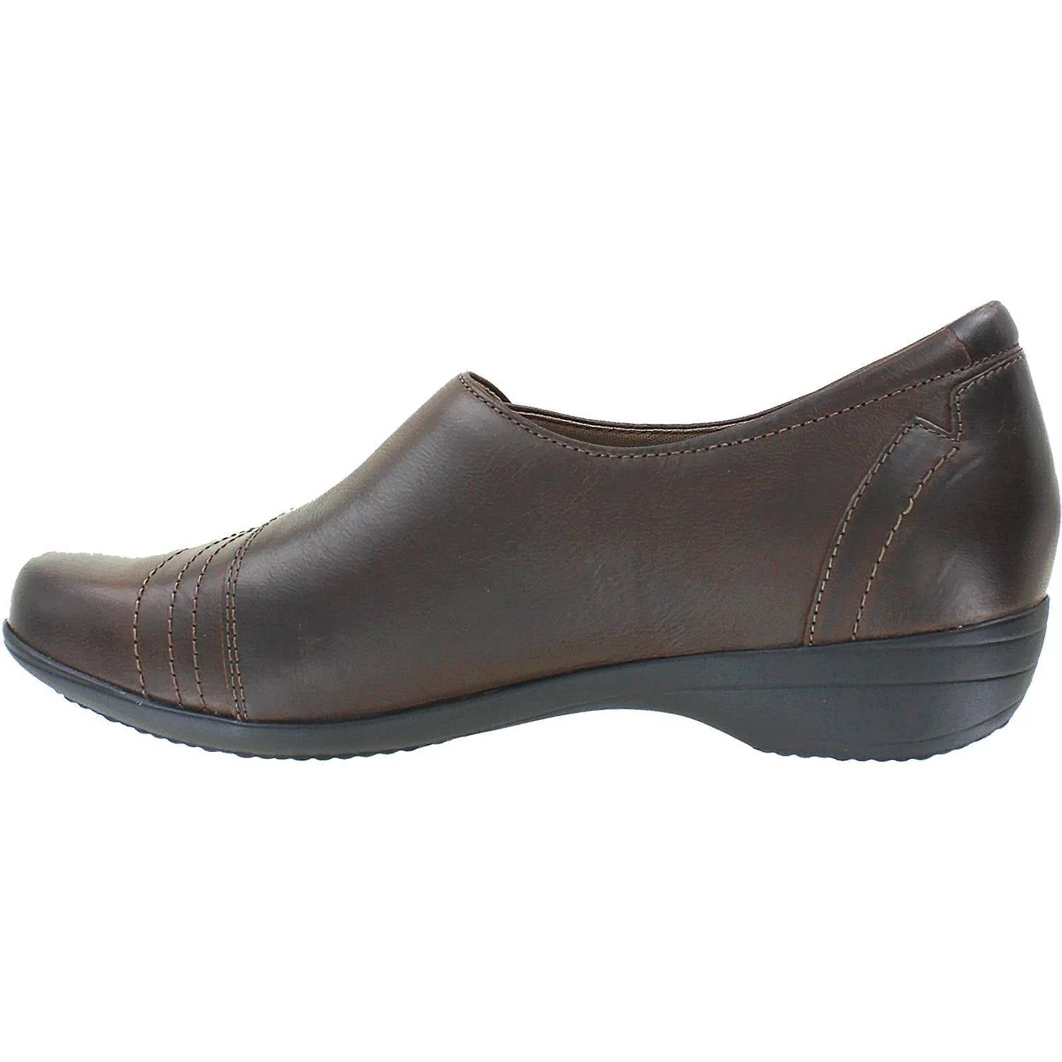 Don't be deceived, these heels are comfy as can be. The Franny loafer features adjustability over the instep by combining an elastic cord with a hook-and-loop closure. Design features include decorative stitching details, and comfort features include a molded EVA footbed with Dansko Natural Arch® support and cushioning. A rubber outsole provides long-lasting wear.