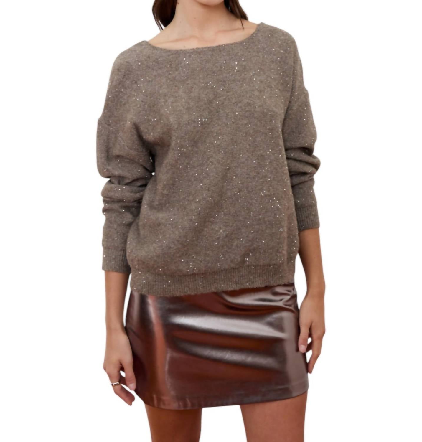 Introducing the CATALPA SWEATER by Dèluc, a stylish women's piece in a sophisticated taupe hue. Crafted from acrylic, this sweater features textured long sleeves and a classic crewneck design, perfect for versatile wear. Designed with a pull-on closure for ease, it's a comfortable choice for any occasion. Ideal for those seeking chic style with minimal maintenance.
