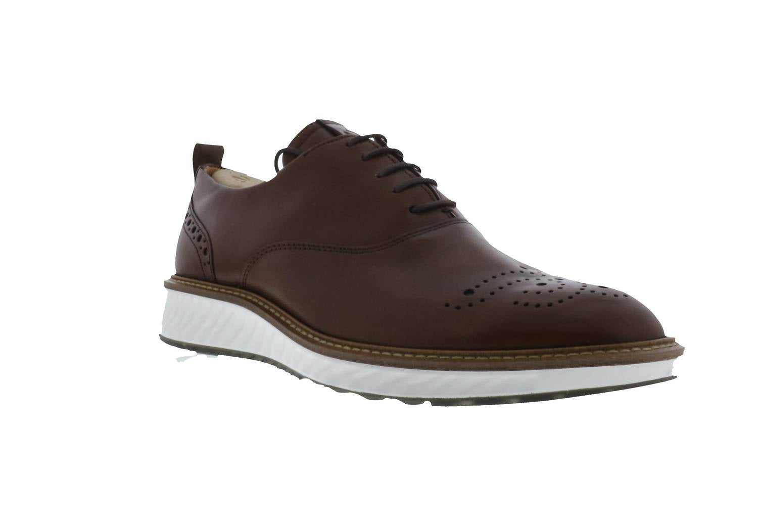 Premium, flexible leather. Glove-like fit for comfort. Wingtip detailing adds a stylish touch. Elegant waxed textile laces enhance sophistication. Molded leather insole and combined leather and textile lining offer support and comfort. Unique to a men's smart shoe, a back heel pull tab allows for easy-on movement. ECCO PHORENE midsole provides cushioning and support.