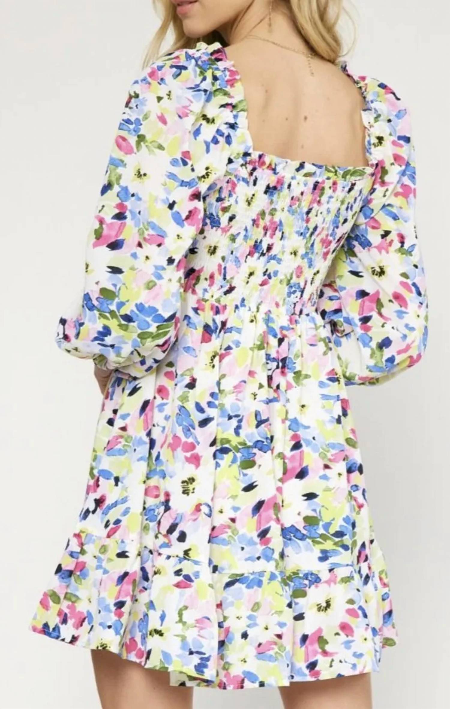 Embrace the essence of summer with the Long Sleeved Print Dress by Entro, featuring a charming floral pattern. This mini, A-line dress boasts a elegant square neckline and long sleeves, exuding boho chic vibes. With a pull-on closure and side pockets, it's both practical and stylish for your vacation wardrobe. Care: Hand wash and line dry for best results. Ideal for women who love to showcase effortless style in a white multi-color palette.