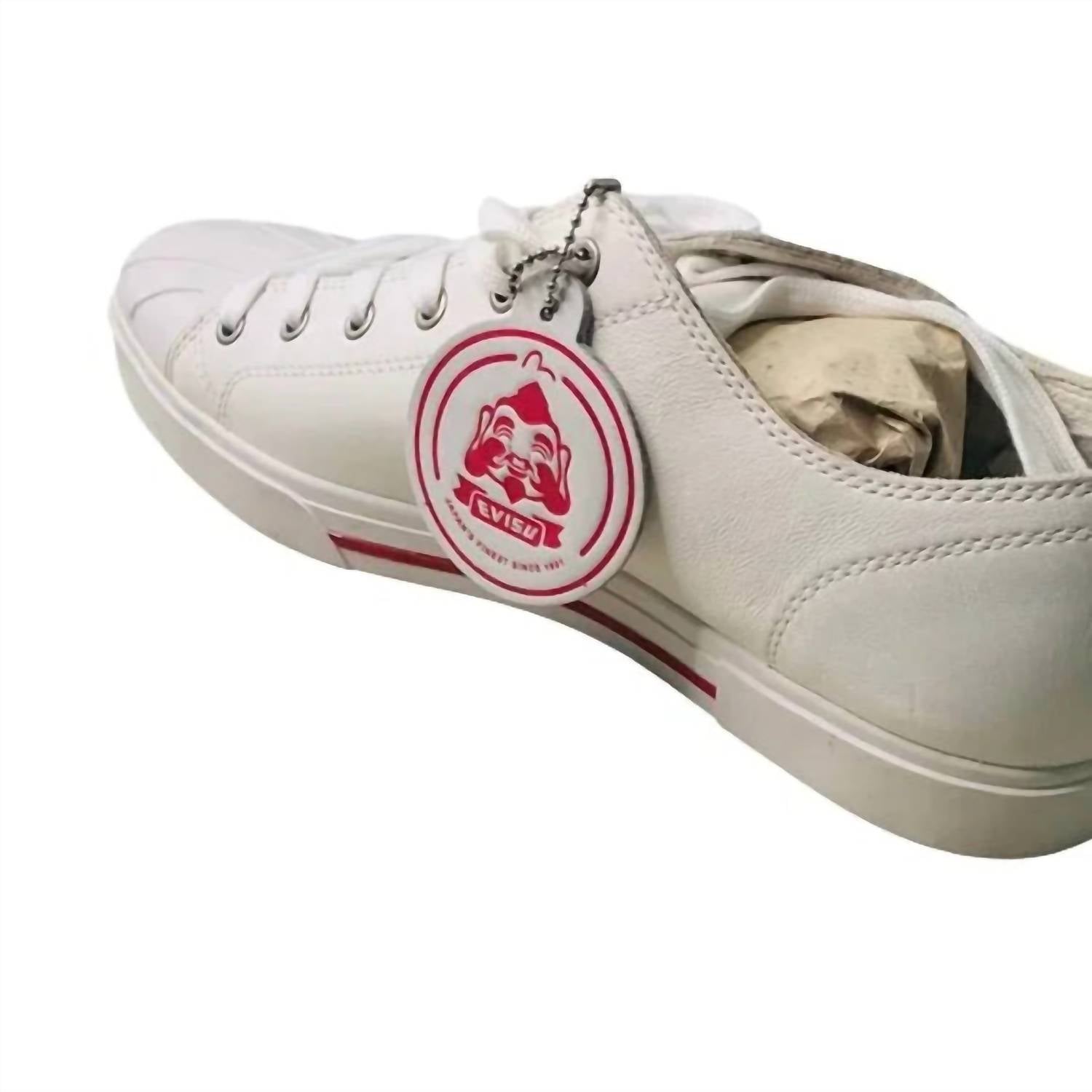 Step out in style with Evisu's Men's Premium Streetwear Sneakers in a striking white and gold. Made from high-quality leather, these sneakers embody modern streetwear aesthetics and are designed for durability and comfort. Perfect for casual wear and urban fashion, they feature iconic branding and a sleek design suitable for statement looks during any spring excursion. The sneakers offer a flat heel style with a round toe, making them ideal for travel and celebrating occasions like the 4th of July.