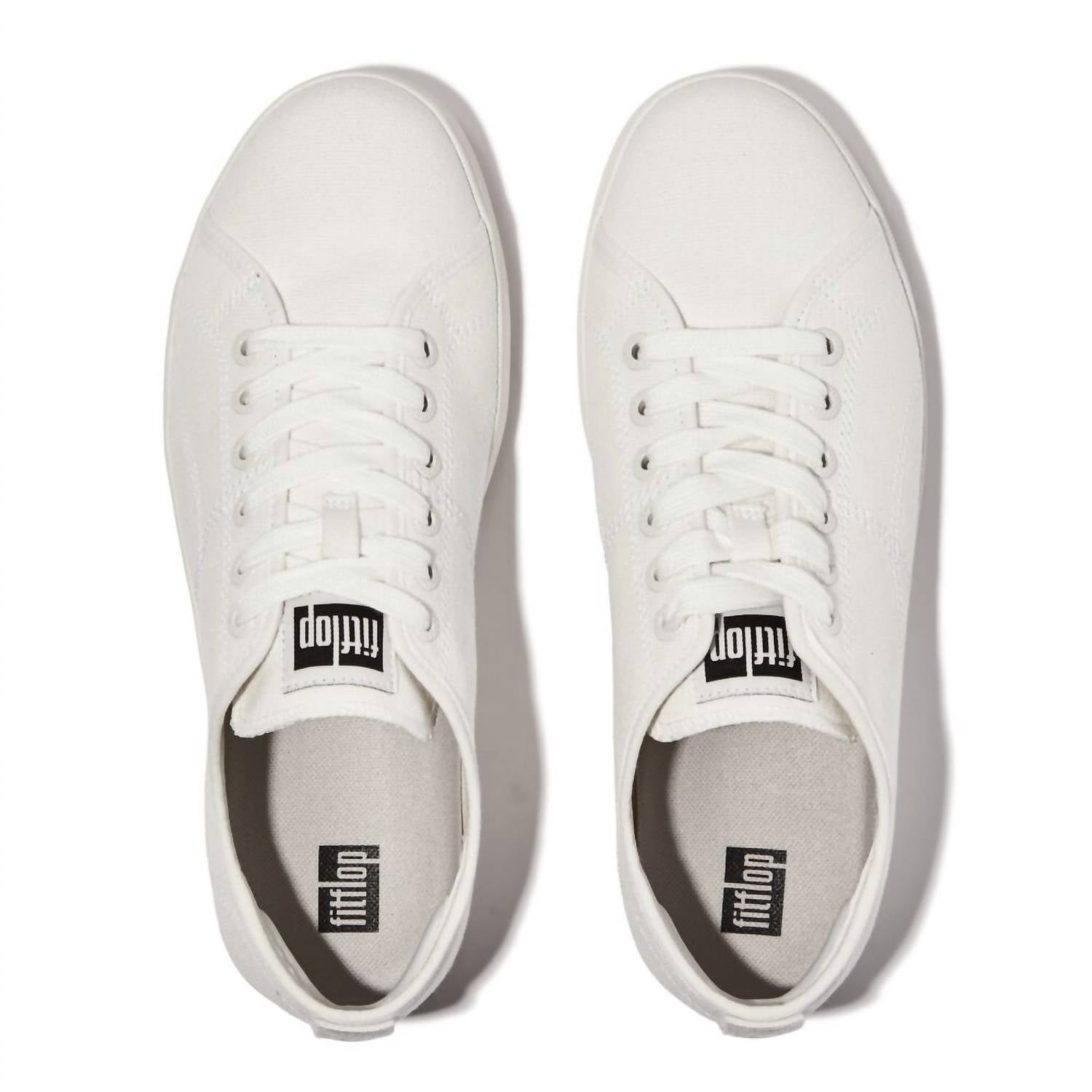 Step into style and comfort with the Women's Rally Canvas Sneaker by FitFlop, crafted in Urban White. Made from soft canvas, these sneakers feature a timeless round-toe silhouette and soft padding for all-day wear. They are equipped with ultra-light, flexible Anatomicush™ midsoles, making them your go-to on busy days. Perfectly versatile, these sneakers pair effortlessly with everything from jeans and shorts to tailored outfits or a floaty tea dress.