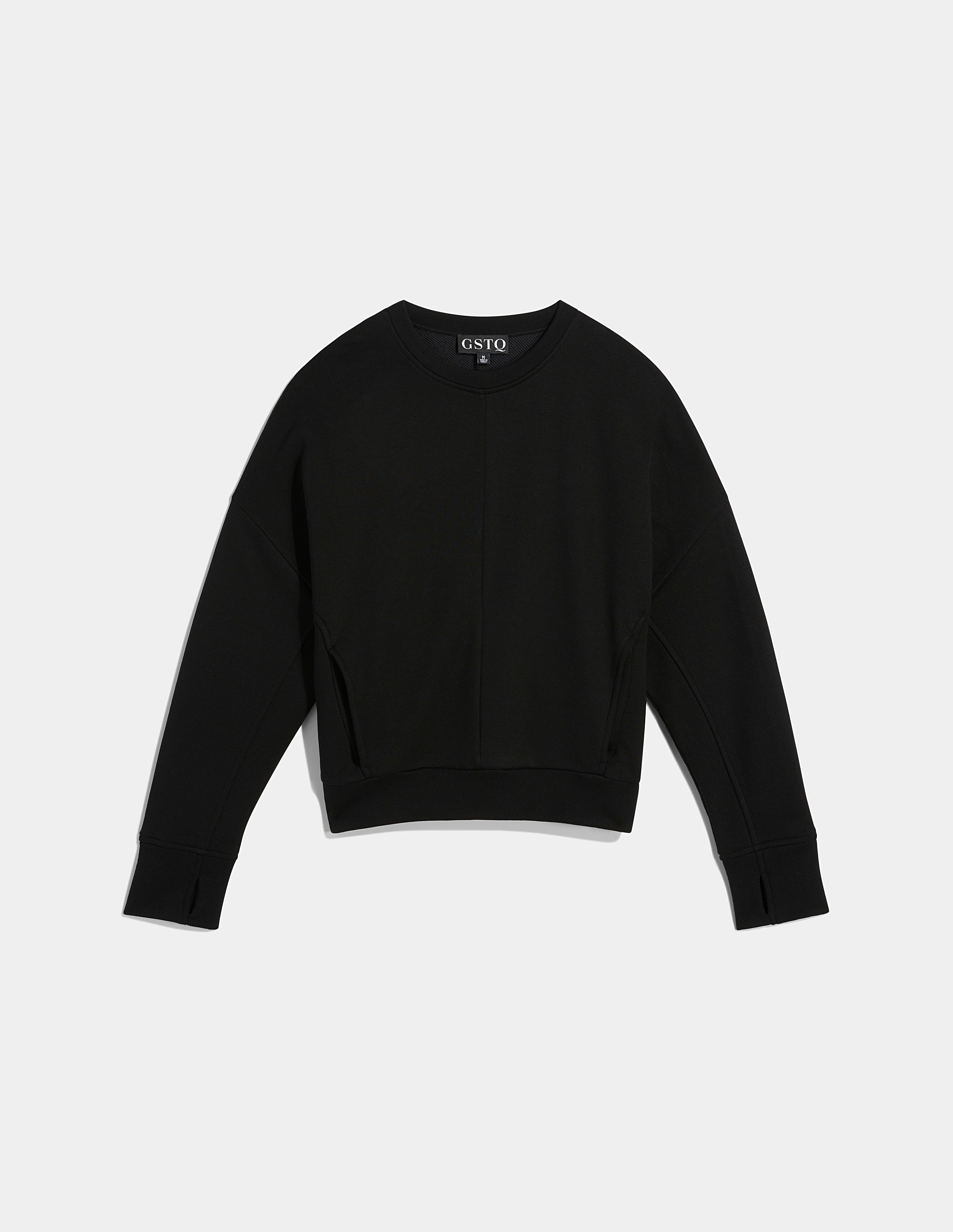 This crewneck top is a soft and stylish choice that features side pockets and center back detail. Fits true to size.