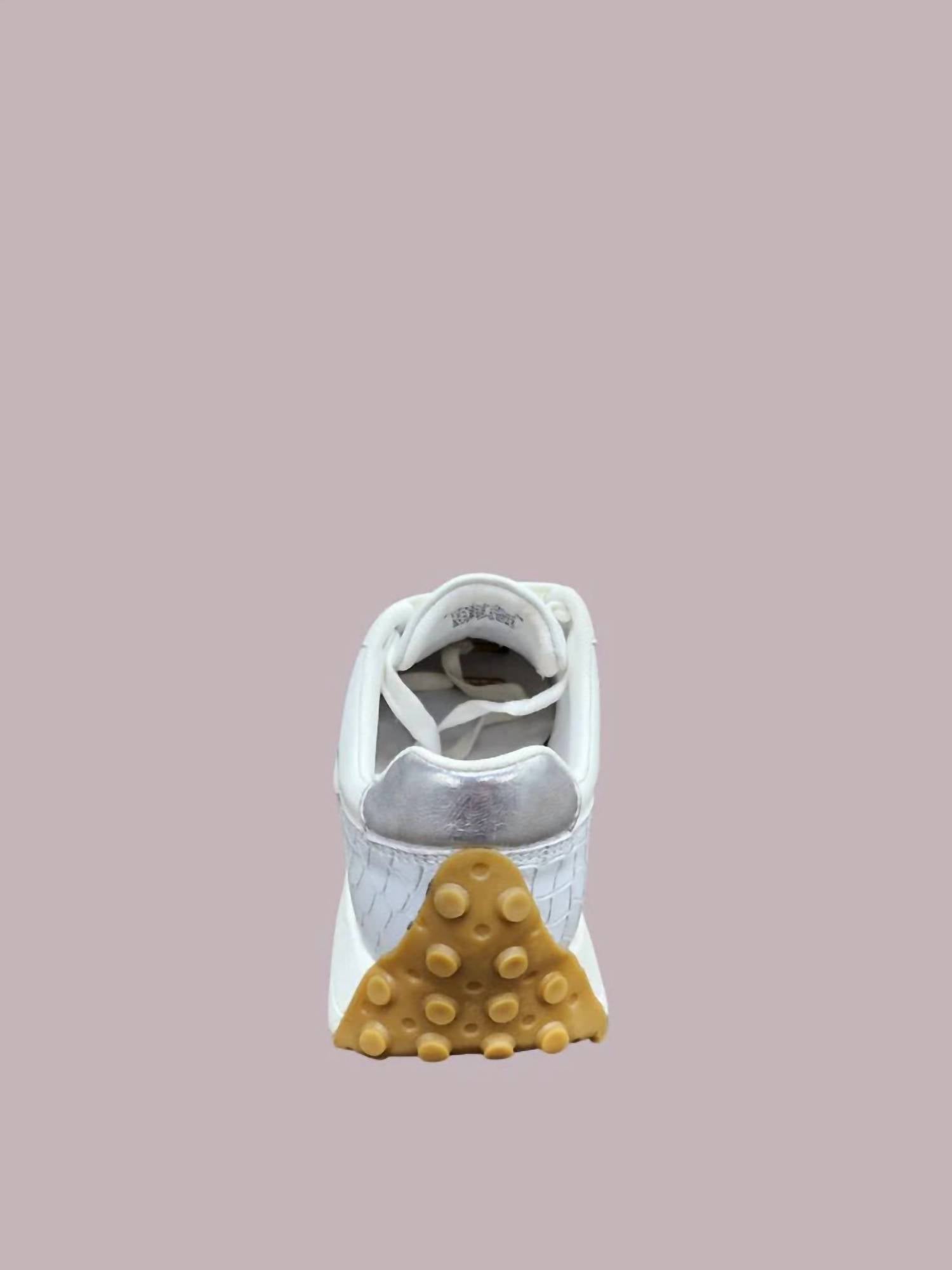Experience the perfect mix of sporty and chic, crafted in a fashionable White Croc finish. Feature a leather upper and lining, complemented by a lug-style sole and cushioned heel cup with a silver accent, ideal for all-day comfort. Designed with a functional 4cm wedge heel set on a 2cm platform, offer a casual yet stylish look suitable for various occasions.