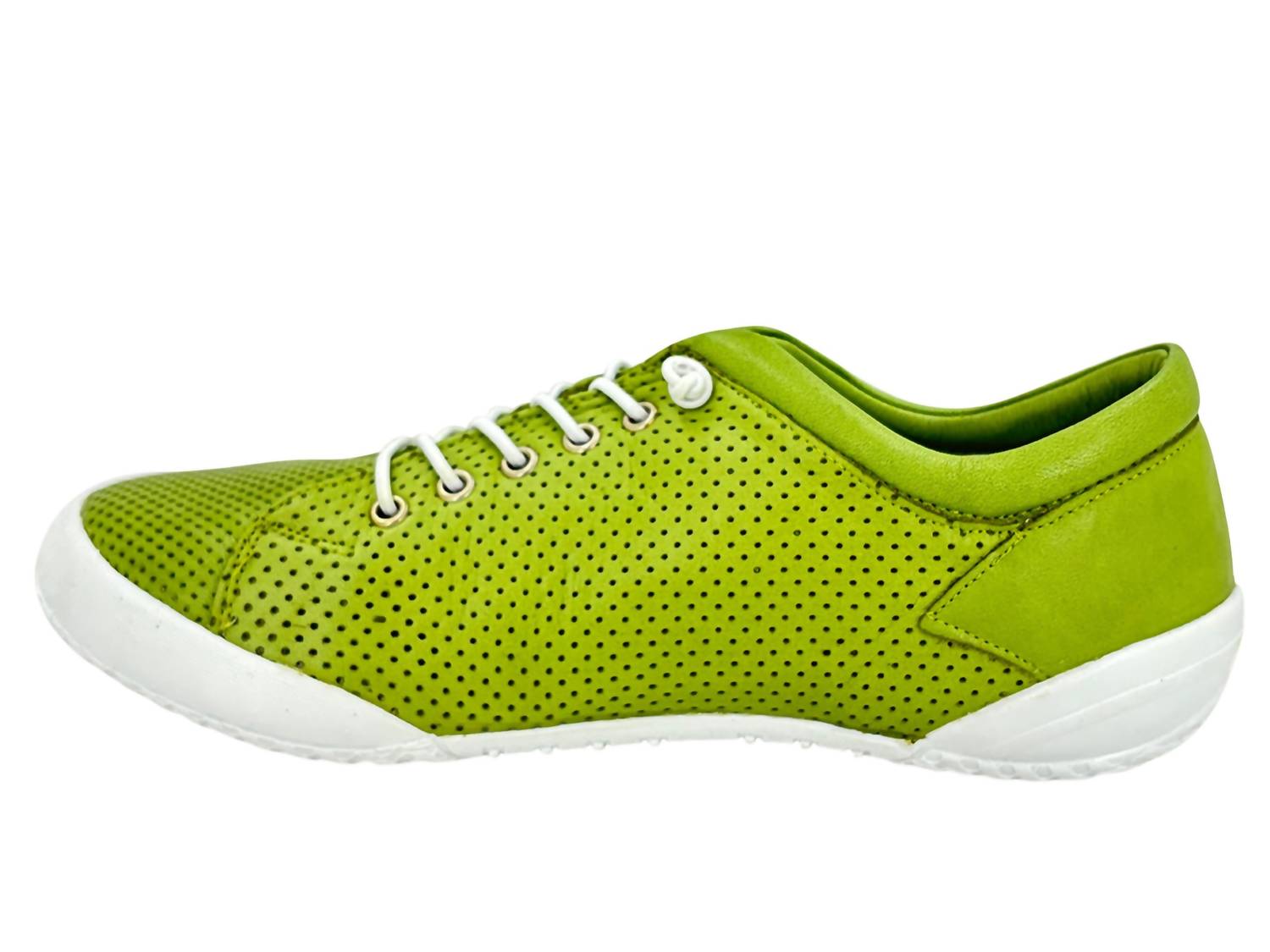 Introducing the Women's Teejay Casual Sneakers by Gelato, perfect for elevating your spring and summer wardrobe. Crafted from premium perforated leather, these sneakers feature a full leather upper and lining, ensuring breathability and softness. A round elastic bungee lace closure offers a snug fit, with the option for regular laces to customize comfort, and a lightweight rubber outsole provides superior traction for versatile use. The extra cushioned, removable footbed ensures exceptional comfort and arch support, making these flat-heeled sneakers ideal for both travel and casual outings.