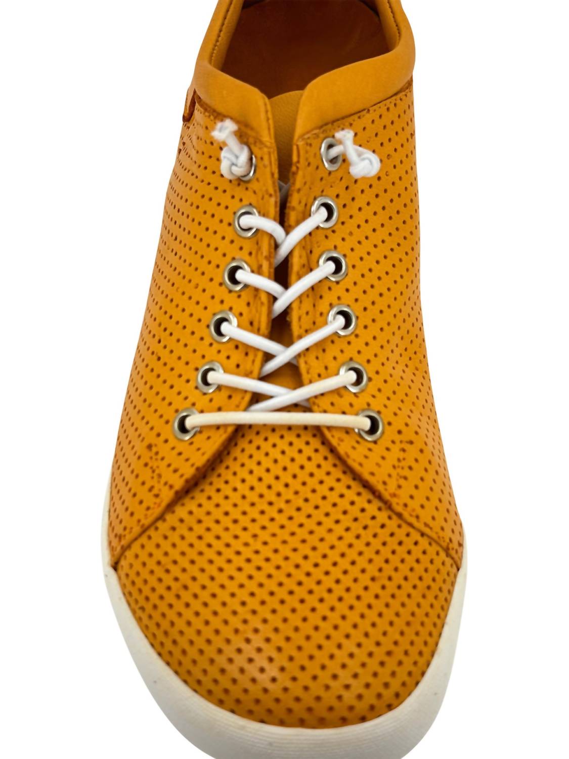 Introducing the Women's Teejay Casual Sneakers by Gelato, perfect for elevating your spring and summer wardrobe. Crafted from premium perforated leather, these sneakers feature a full leather upper and lining, ensuring breathability and softness. A round elastic bungee lace closure offers a snug fit, with the option for regular laces to customize comfort, and a lightweight rubber outsole provides superior traction for versatile use. The extra cushioned, removable footbed ensures exceptional comfort and arch support, making these flat-heeled sneakers ideal for both travel and casual outings.