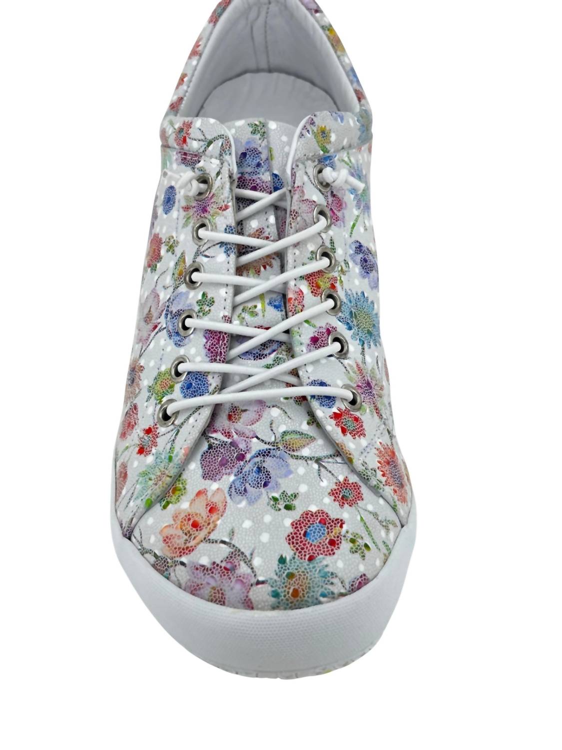 Introducing the Women's Tessa Casual Sneakers by Gelato, a chic blend of elegance and comfort in stylish white floral. With a premium leather composition, these Turkey-crafted sneakers feature round toes and a flat heel under 1", perfect for trendy 90s-inspired travel looks. The elastic and traditional laces offer a personalized fit, while the leather lining enhances breathability for all-day freshness. Boasting a removable cushioned footbed and flexible rubber outsole, they promise superior comfort and stability for any adventure.