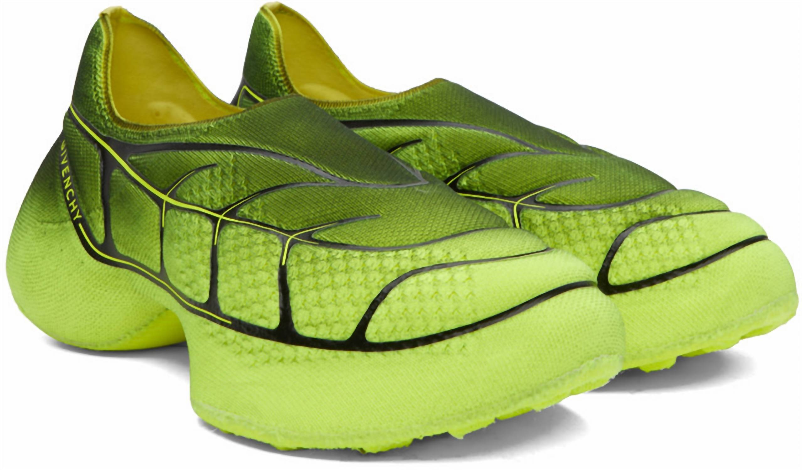 Discover the Men's TK-360 Plus Low Top Sneakers by Givenchy, a perfect blend of style and innovation for your summer travels. These low-top knit sneakers in striking black and yellow feature durable rubber soles and resistant technical mesh, with a graphic grid fading knit. Embellished with the 4G emblem and Givenchy's signature on the sides and insoles, the sneakers showcase texture with black bonded trims and contrasted heat-bonded lines. Made in Italy, the sneakers offer a platform height of 1.5 inches, with a faux-suede lining and round toe design, embodying the Y2K trend. Upper: textile. Sole: textile, rubber.