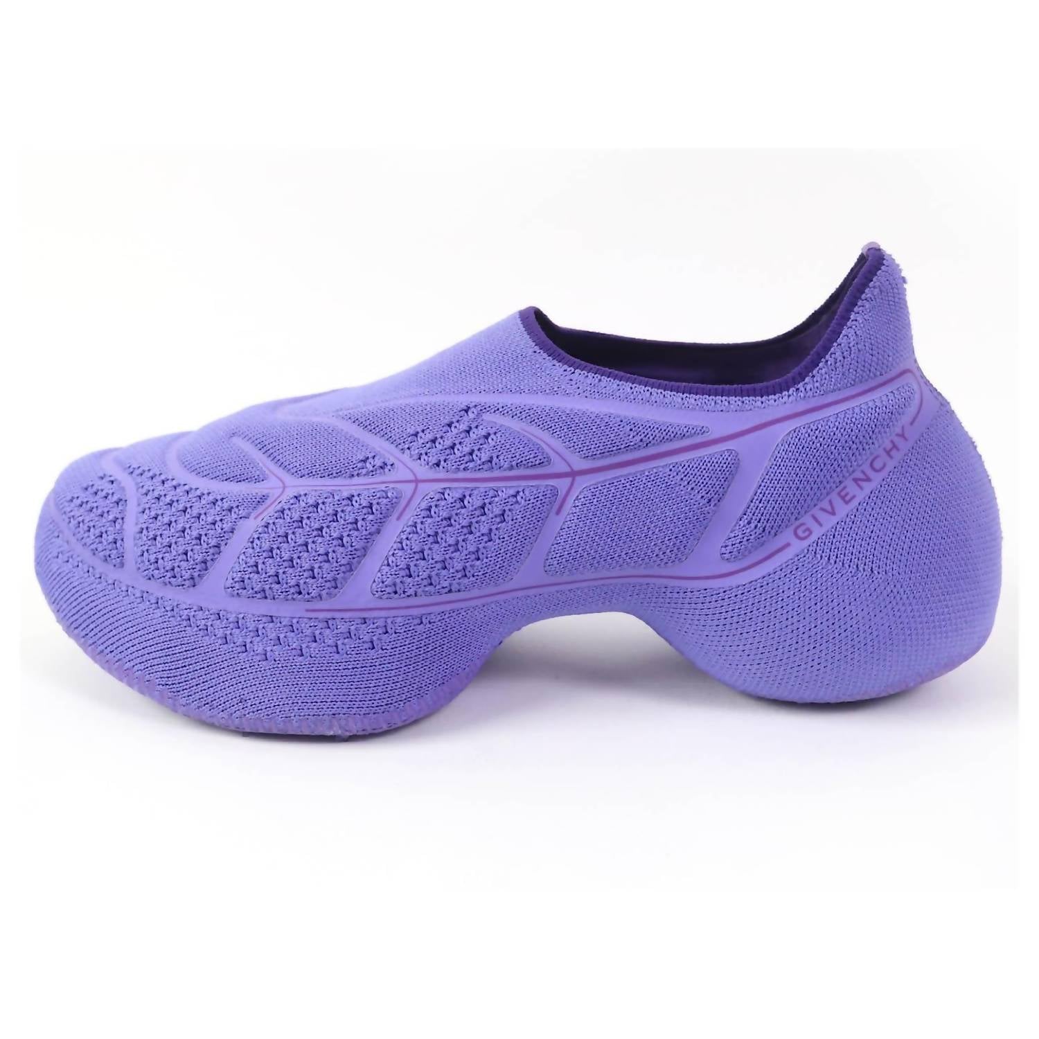 Experience the Givenchy Ultra Violet TK-360 Plus Sneakers, exquisitely crafted in Italy. These men's summer sneakers feature a comfortable slip-on design with a contoured knit upper and a distinctive round toe. The iconic 4G-logo with logo lettering adds a unique touch, while the rubber outsole and polyester/polyurethane lining ensure durability and comfort. Ideal for New Year's Eve celebrations or travel occasions, these Y2K-inspired sneakers showcase a low heel height of 1 1/4"-2".a