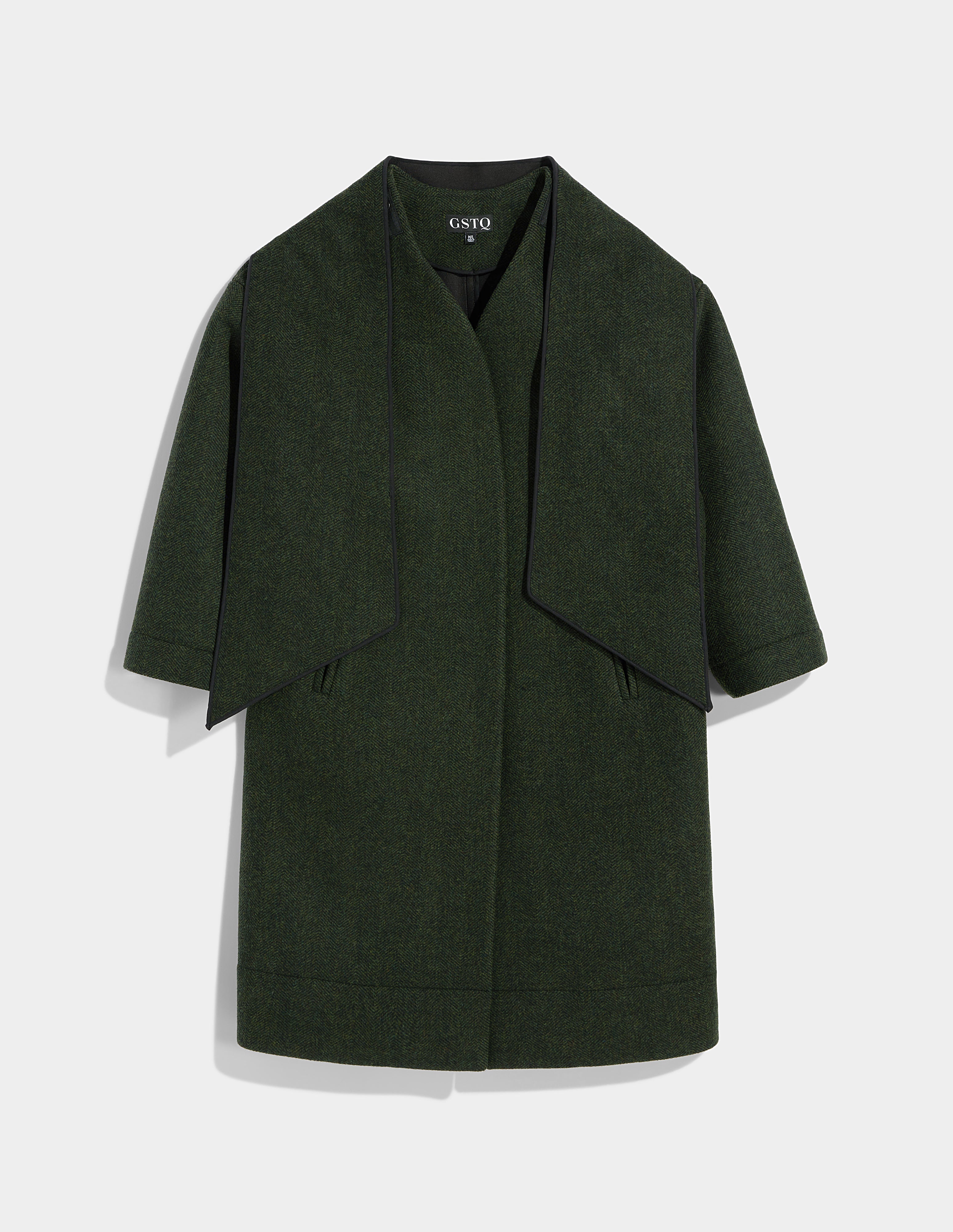 With a detachable scarf and iconic herringbone, this double-faced wool exterior with recycled polyester interior coat is sleek and chic all at once.