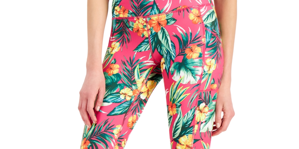 ID Ideology Women's Tropical Side Pocket Cropped Leggings Pink Size Petite Large