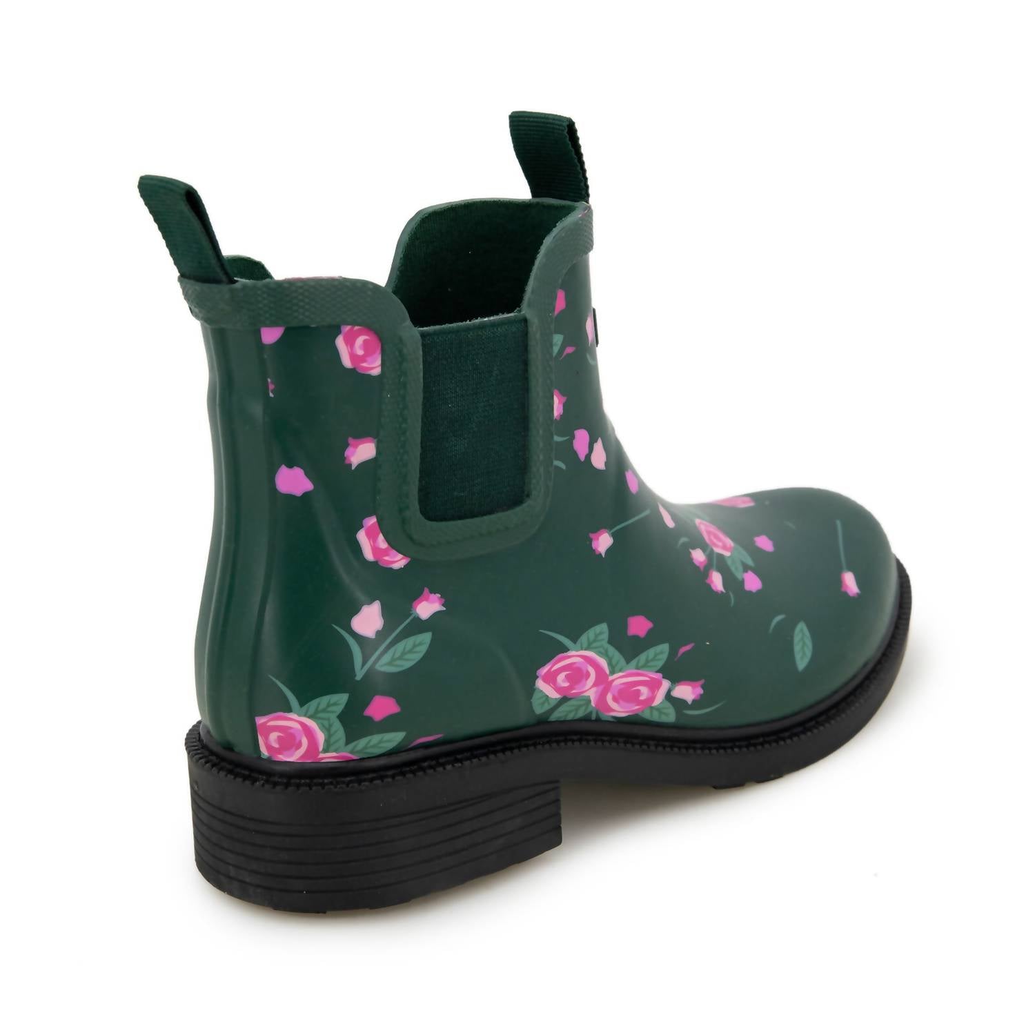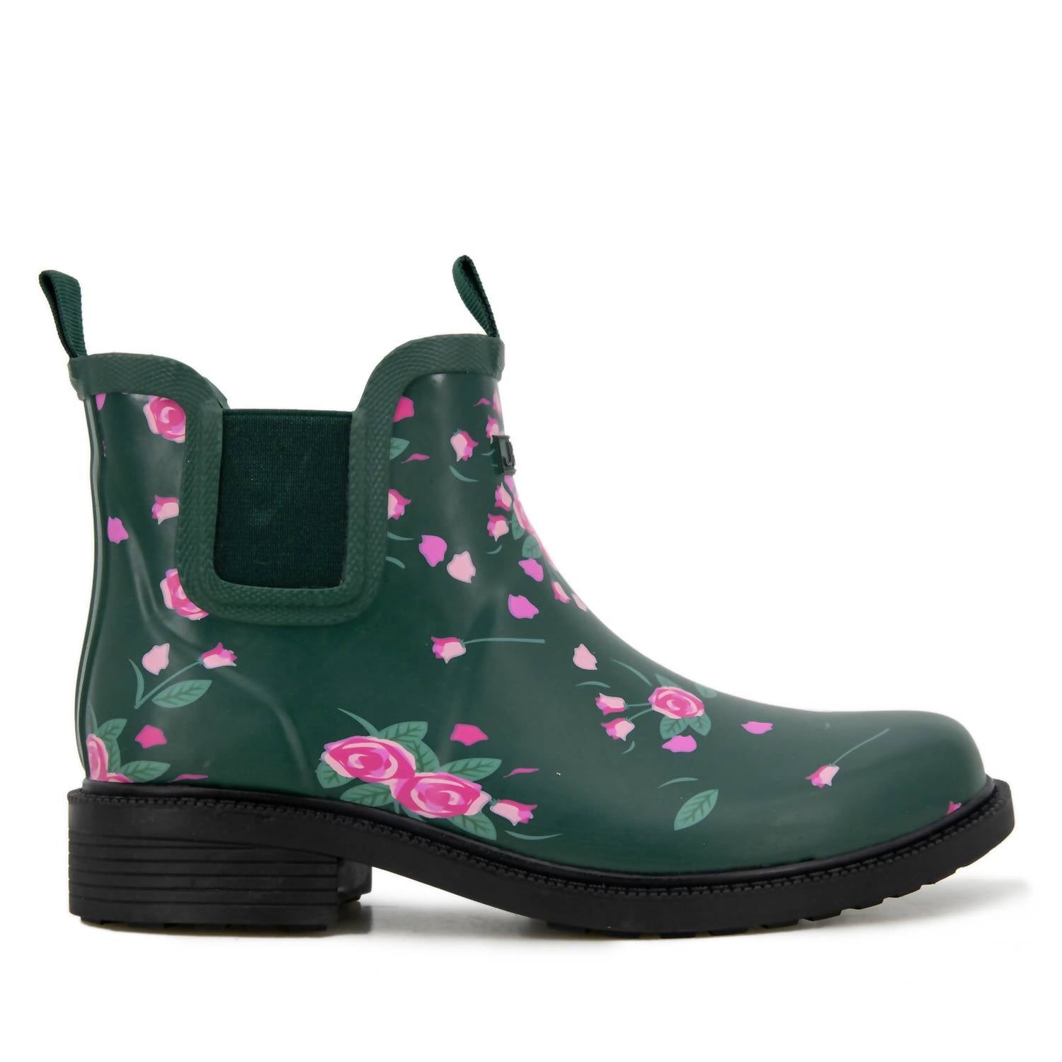 Rainy day? No problem! The cutest and most comfortable rainboots of the season.Comfortable polyester lining. Rubber outsole with Hunter Original tread pattern. Elastic side gussets and nylon pull-tab. Green floral print. Waterproof.