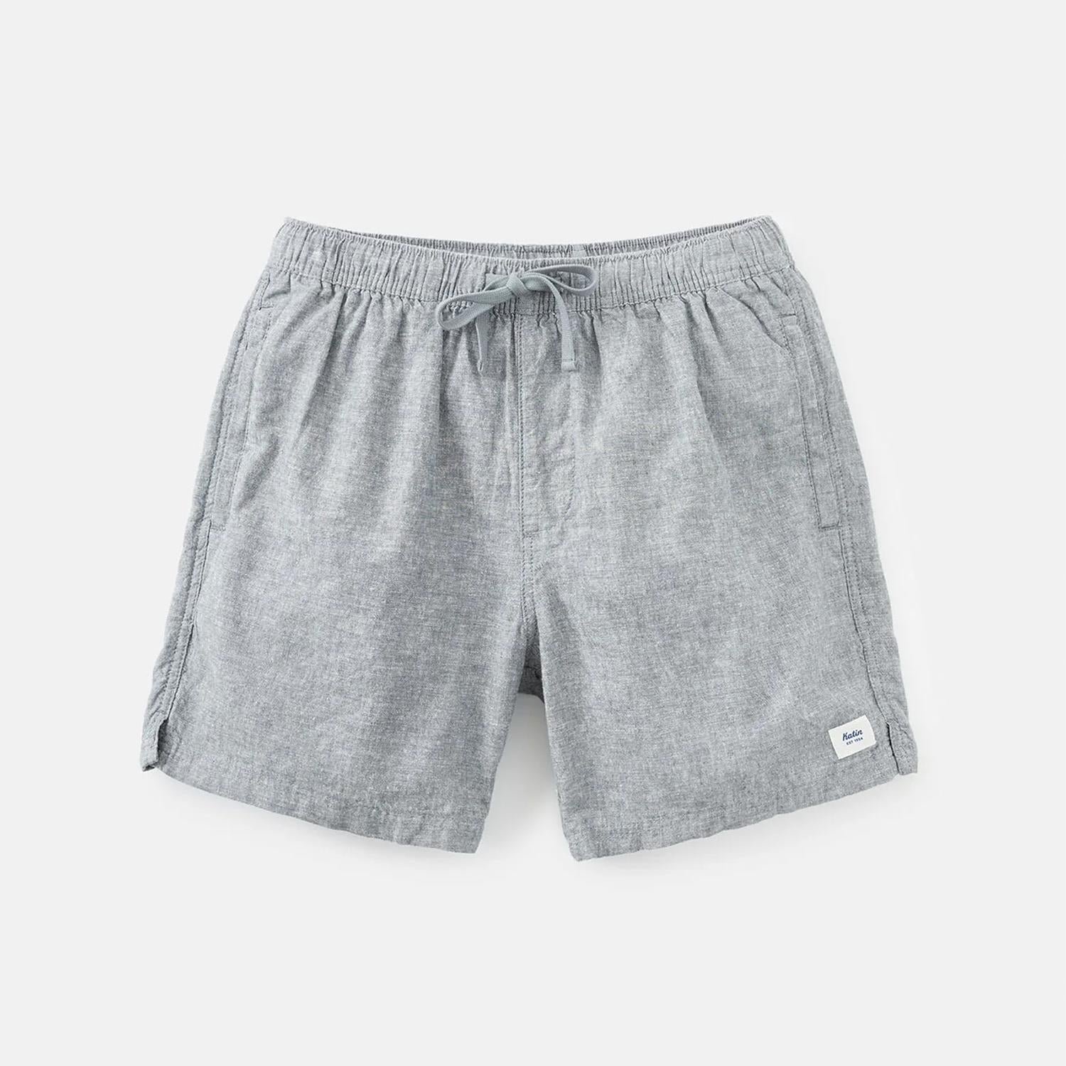 Introducing the Isaiah Local Short by Katin, crafted for ultimate comfort in breathable cotton linen chambray. These steel blue shorts feature a pull-on closure with a clean-finished interior binding, perfect for minimalist summer travel. With a 17" outseam, the design includes convenient front welt side-seam and back welt pockets. Composition: 75% cotton, 25% linen. Care: Machine wash, tumble dry.