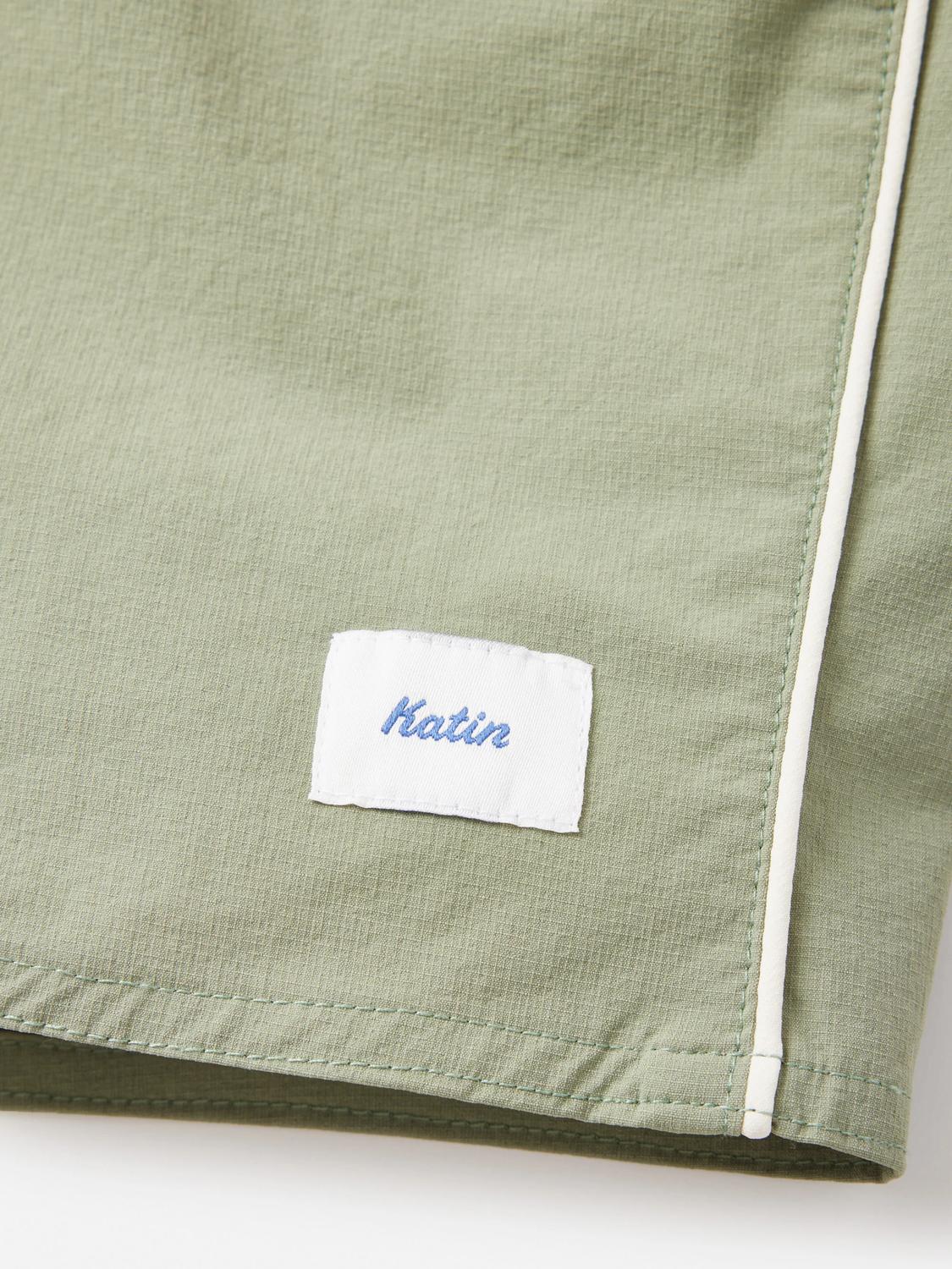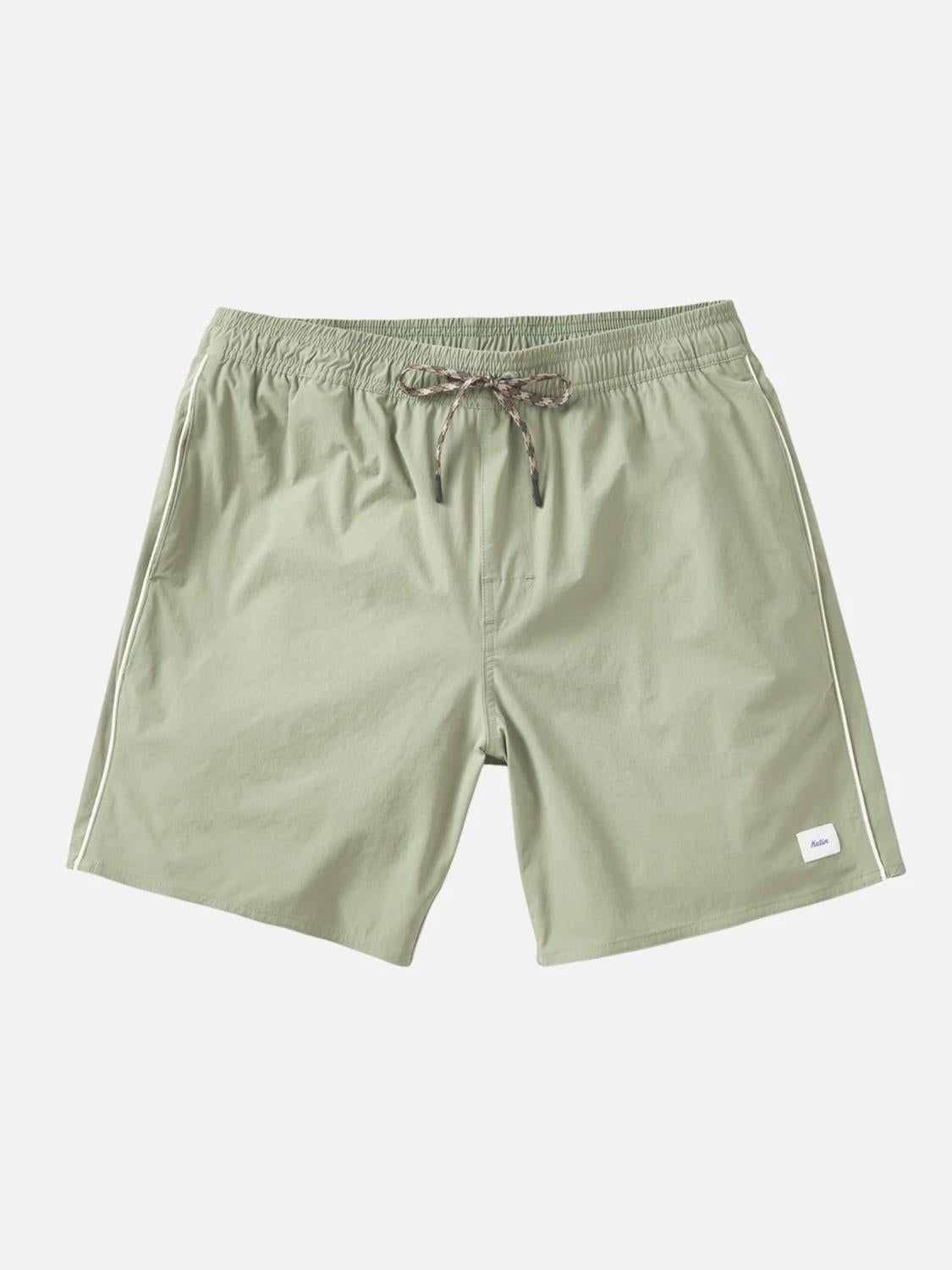Introducing the Men's Otg Richie Volley by Katin, a versatile short from the OTG collection designed for active pursuits. These shorts feature an elastic waistband with drawcord closure, 17" outseam, and convenient side seam pockets. Crafted from a 92% Nylon, 8% Spandex Stretch Ripstop blend, they offer 4-way stretch, UPF 50 protection, moisture-wicking, and quick-dry capabilities, with a reflective logo above the back zip pocket. Ideal for summer activities, they come in a stylish Sea Gray color, ready for game day or any energetic occasion.
