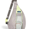 The KAVU Rope Sling Bag in Sage Terrace offers style and functionality with its adjustable rope shoulder strap featuring a convenient side release buckle. Constructed from durable 11oz 100% 600D polyester, this water-resistant bag ensures your essentials stay protected. It includes two vertical zip compartments, two key or cell phone pockets, and a padded back with KAVU embroidery for comfort. With overall dimensions of 20" x 11" x 5", a cross body strap length of 22" - 44", and weighing just .8 lbs, this bag is designed for both ease and versatility.