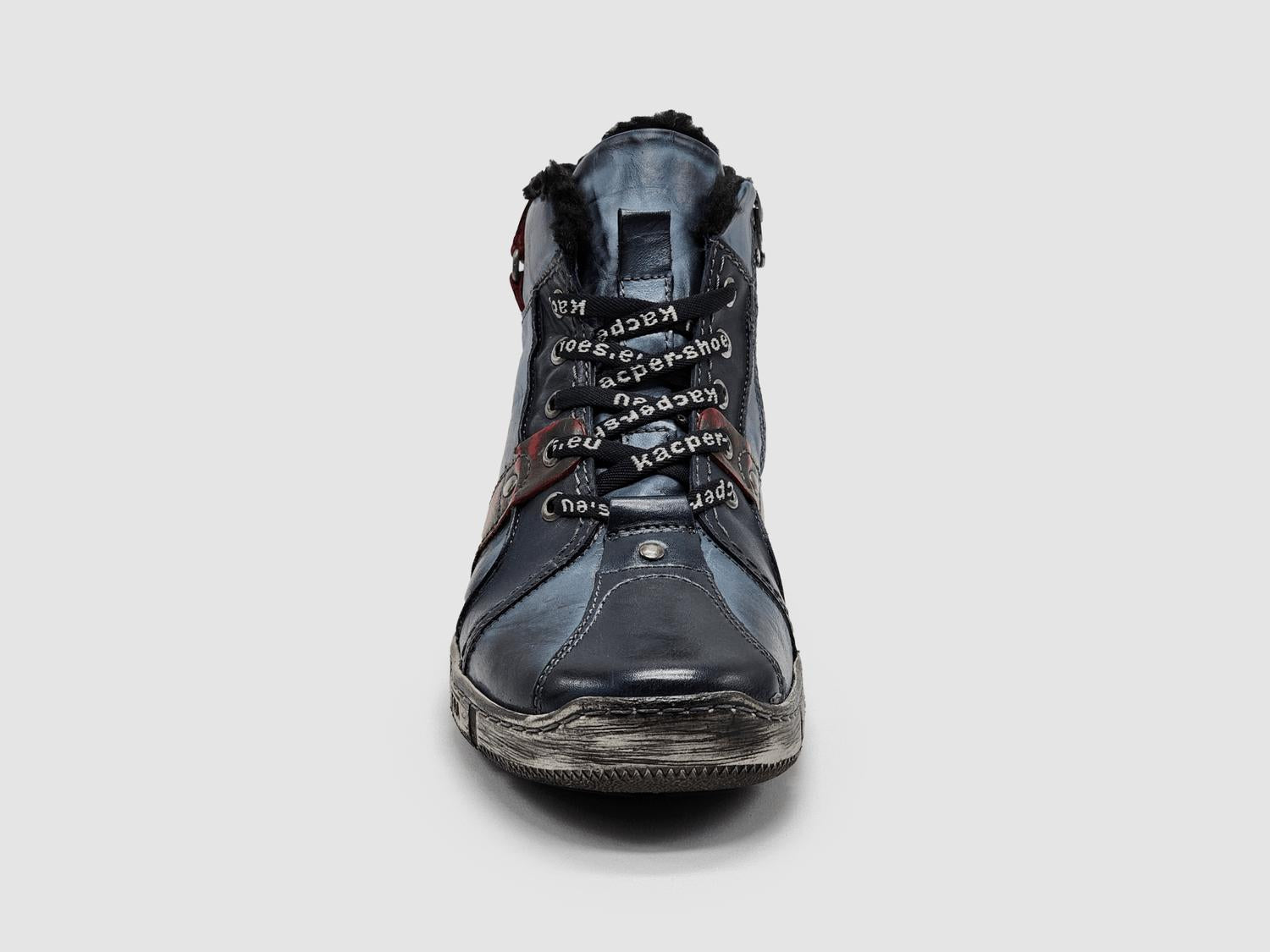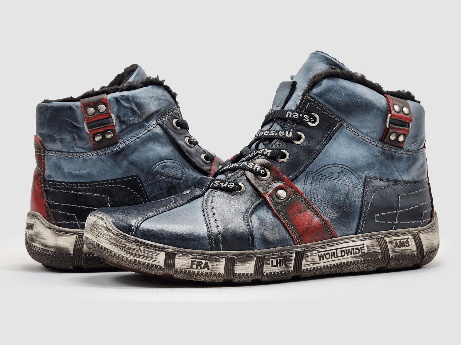 Experience ultimate comfort with the Men's Comfort Thick Wool-Lined Zip-Up Leather Boots by KCR Group, expertly crafted in Poland. These navy boots are designed with a convenient zipper closure and a luxurious wool lining to keep your feet warm and insulated. Made from high-quality leather, they guarantee durability and comfort for all-day wear. Perfect for colder weather, these sleek boots also feature a classic round toe shape.
