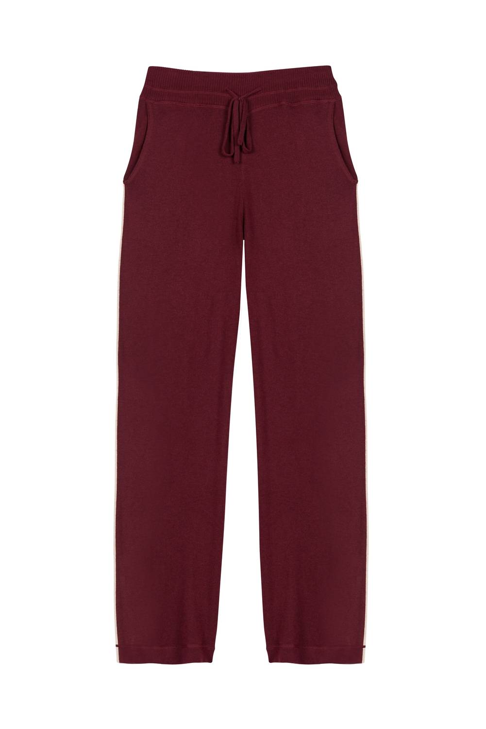 No gym necessary for these cool-girl joggers. Introducing the Women's Tokyo Track Pant by LEIMERE, crafted for ultimate comfort and leisure in stylish burgundy stripes. These track pants feature a relaxed fit with a nod to varsity style and a convenient pull-on closure. They're composed of a luxurious blend of 50% Modal, 25% Viscose, 15% Nylon, and 10% Cashmere, ensuring softness and durability. Imported and suitable for travel, these pants require hand washing and laying flat to dry or can be machine washed gently with like colors and tumble dried on low. Model is 5'10" and wearing a Small (28" Waist, 16" Leg Opening, 10" Front Rise, 13.75" Back Rise, 30" Inseam).