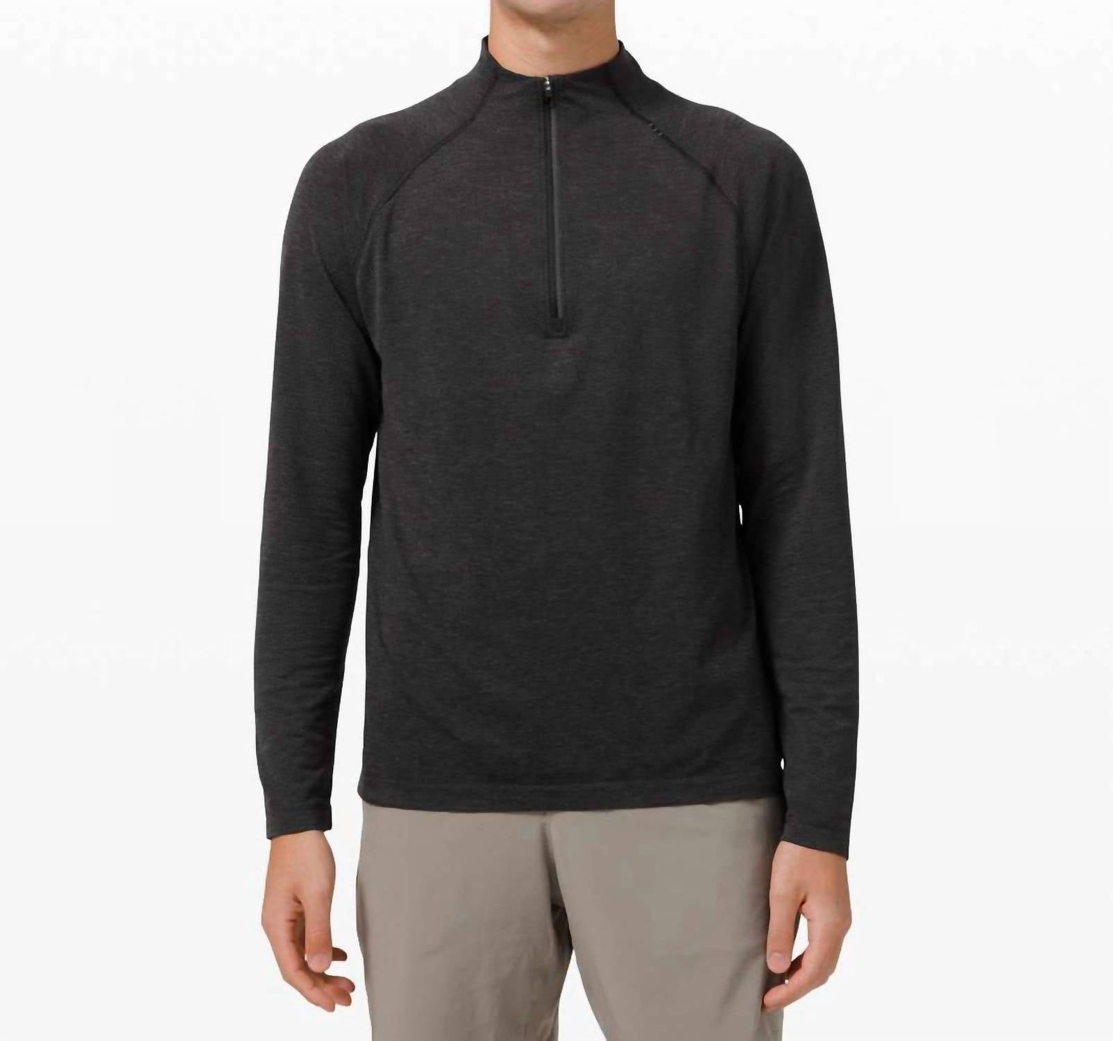 Elevate your workout wardrobe with the lululemon Men's Metal Vent Tech 1/2 Zip 2.0 Pullover in Dark Coal/Black. This long sleeve pullover is crafted from a blend of 49% Nylon, 43% Recycled Polyester, 4% Elastane, and 4% X-Static Nylon, ensuring comfort, stretch, and durability. Designed with a stylish mockneck and zip closure, it's perfect for running and training. Easy care instructions include machine wash and tumble dry, making it convenient for everyday athletic wear.