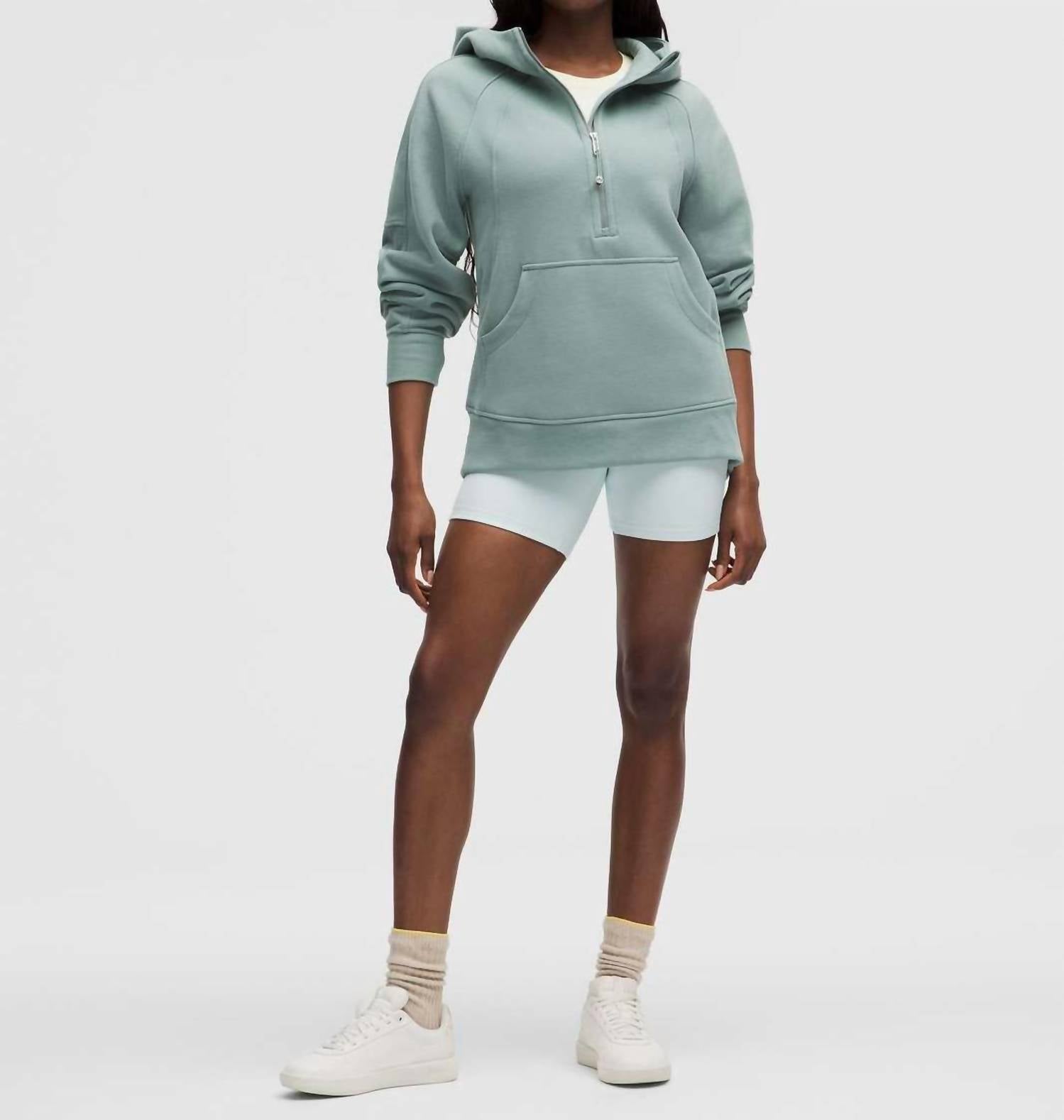 Elevate your casual style with the Lululemon Scuba Oversized Full Zip Hoodie, a must-have in Crater Blue. Featuring long sleeves and crafted from a soft cotton-blend fleece, this hoodie offers lightweight warmth and a cozy oversized fit with a bum-covering length. With a convenient zip closure and a kangaroo pocket, it includes thoughtful details like thumbholes and an elastic zipper pull that doubles as an emergency hair tie. Care is simple: machine wash with like colors and tumble dry low.