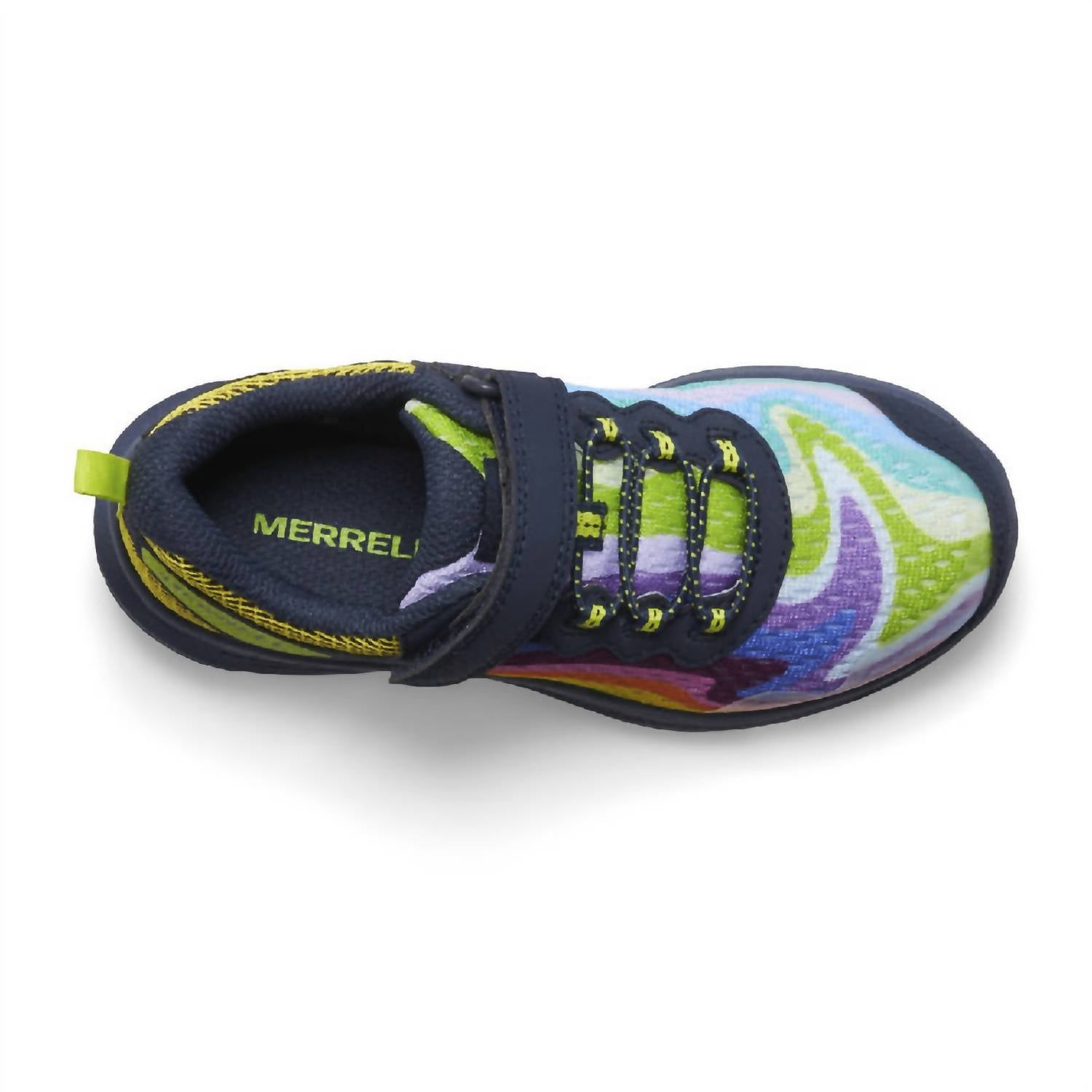 Discover the Kid's Nova 3 Mountains Sneakers by MERRELL, crafted with a playful rainbow design perfect for your adventurous big kid. Constructed from durable rubber, these sneakers are designed to withstand active play. The round toe shape ensures comfort, while the low heel height makes them ideal for everyday wear. Built with a medium shoe width, they offer a comfortable fit for boys, ready to take on any adventure with ease.