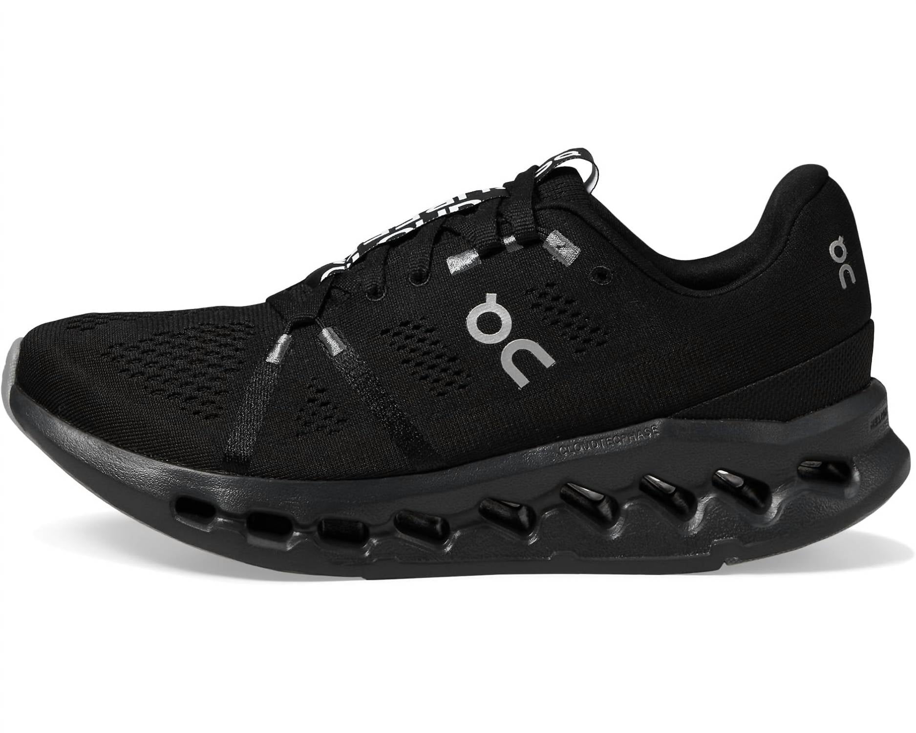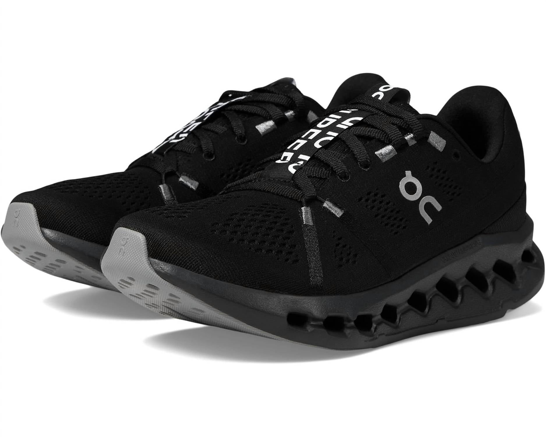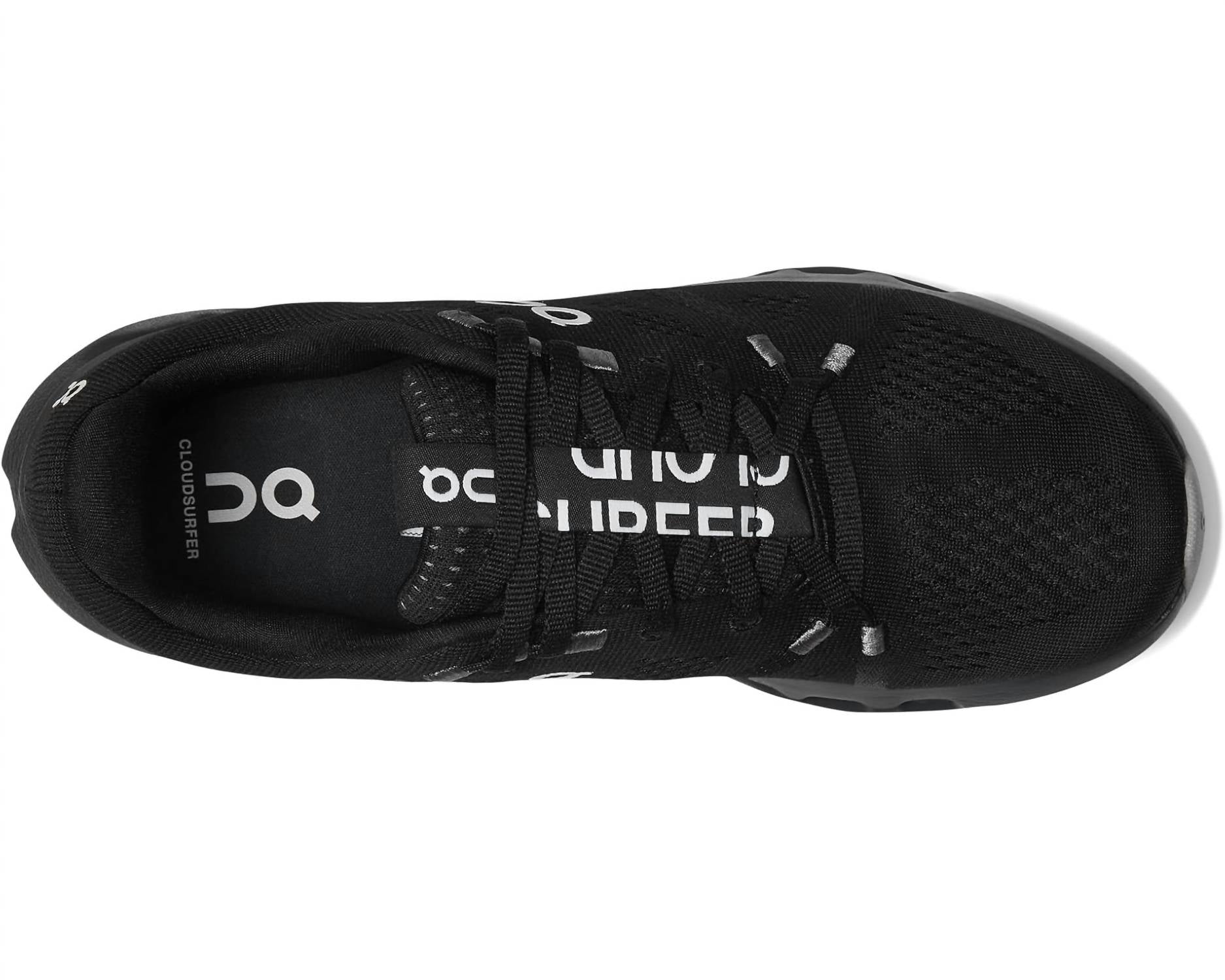 Step into the Women's Cloudsurfer by On, a sophisticated road running shoe in chic All Black. Engineered with CloudTec Phase® cushioning, it ensures a plush, smooth ride with seamless heel-to-toe transitions. Crafted from 30% recycled polyester, these shoes are environmentally conscious while offering computer-optimized design elements for exceptional comfort. Featuring a 10mm heel-to-toe drop and standard lacing, each shoe weighs a lightweight 245g.