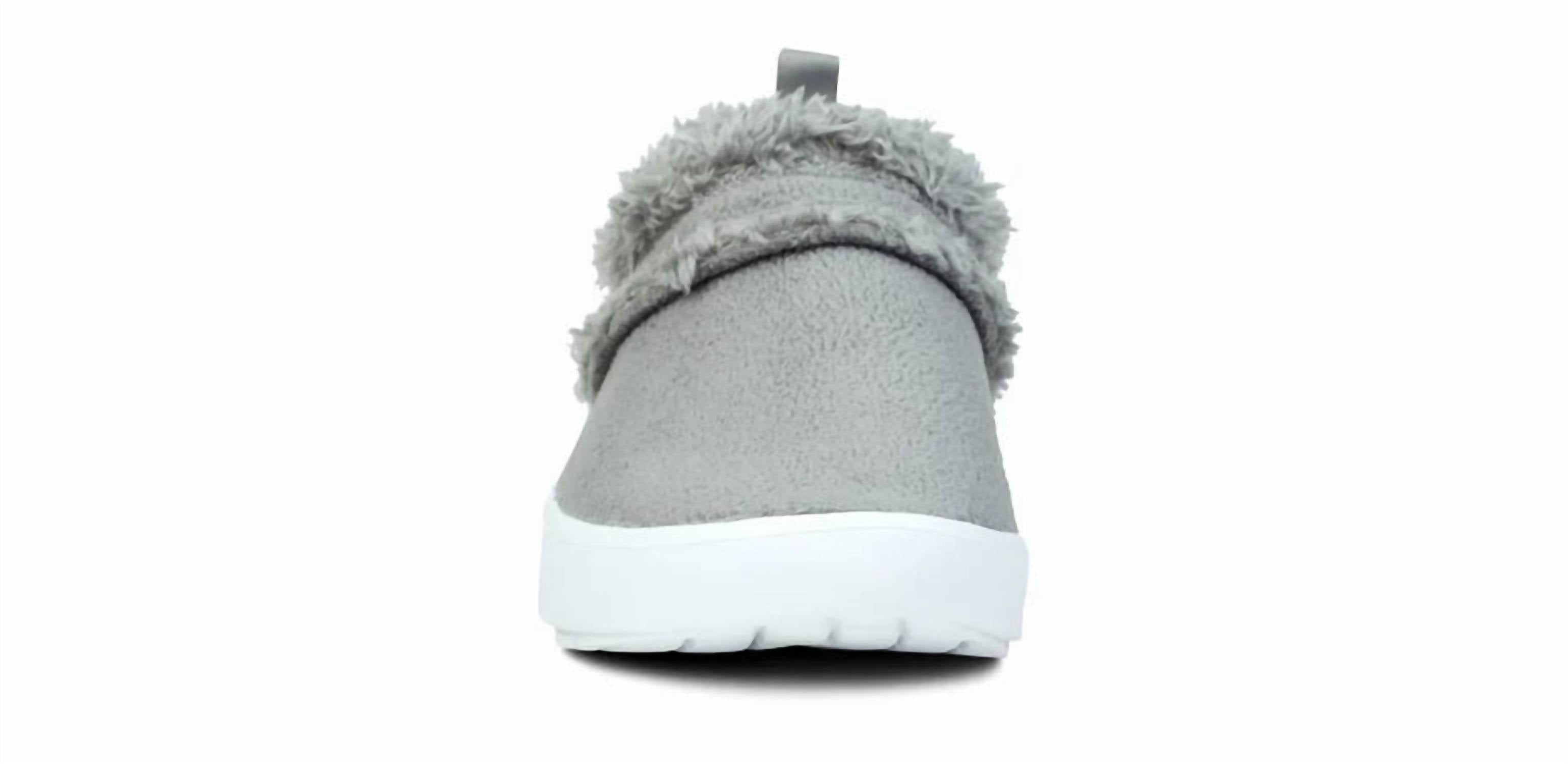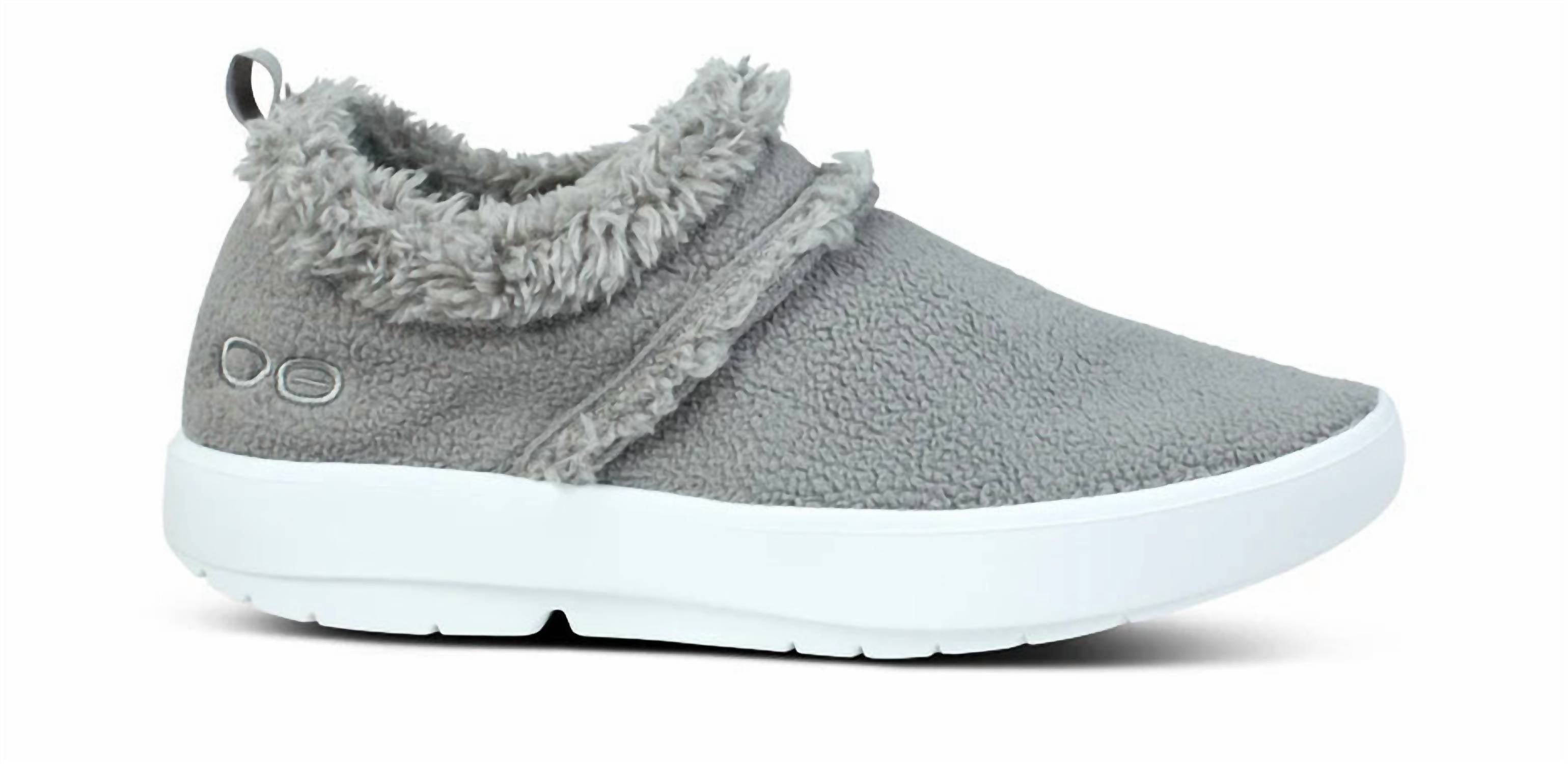 When fashion and function come together seamlessly. Step into comfort with the Women's Oocoozie Low Shoes by OOFOS, available in a chic Slate color. Crafted with a warm vegan upper and a rubber sole, these sneakers offer the perfect blend of cushion and stability, ideal for both indoor lounging and quick errands. Featuring a round toe and flat heel design, these unisex shoes cater to medium width feet. Embrace minimalist style this winter and elevate your dinner party look with ease.