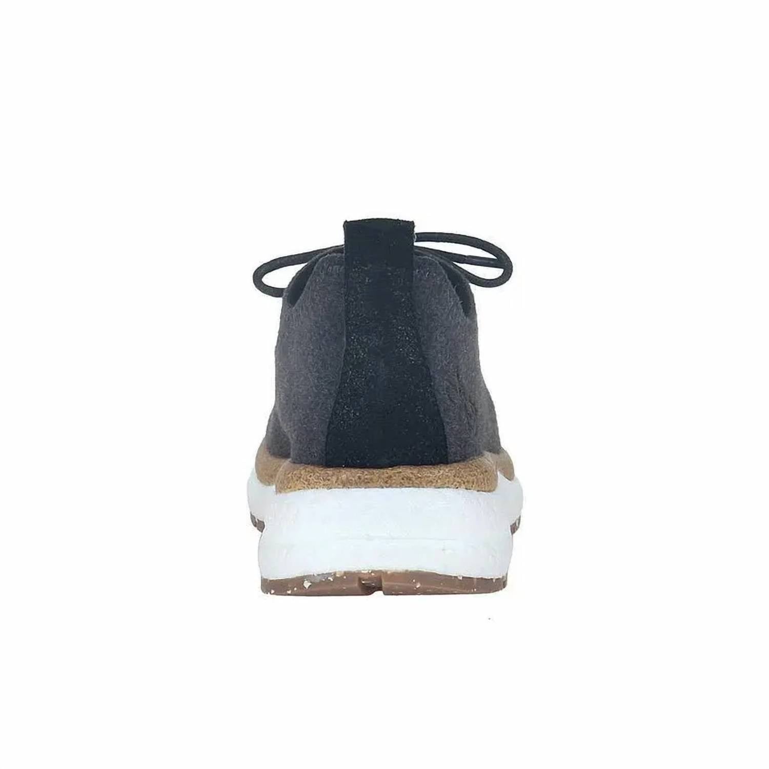 Step into comfort and style with the Women's Courier Sneaker by OTBT, showcasing a contemporary design in classic charcoal. Crafted with a wool blend fabric, this sneaker features a soft, completely unlined upper that is flexible for easy packing, perfect for those on the go. The sneaker includes cotton laces, distressed metal hardware, and a removable EVA, FlexCork footbed with Step Lite spring back technology, ensuring superior comfort with a 1.77" wedge heel and a 1.1" platform. Complete with a recycled rubber lug sole, this sneaker combines form and function for reliable summer wear.