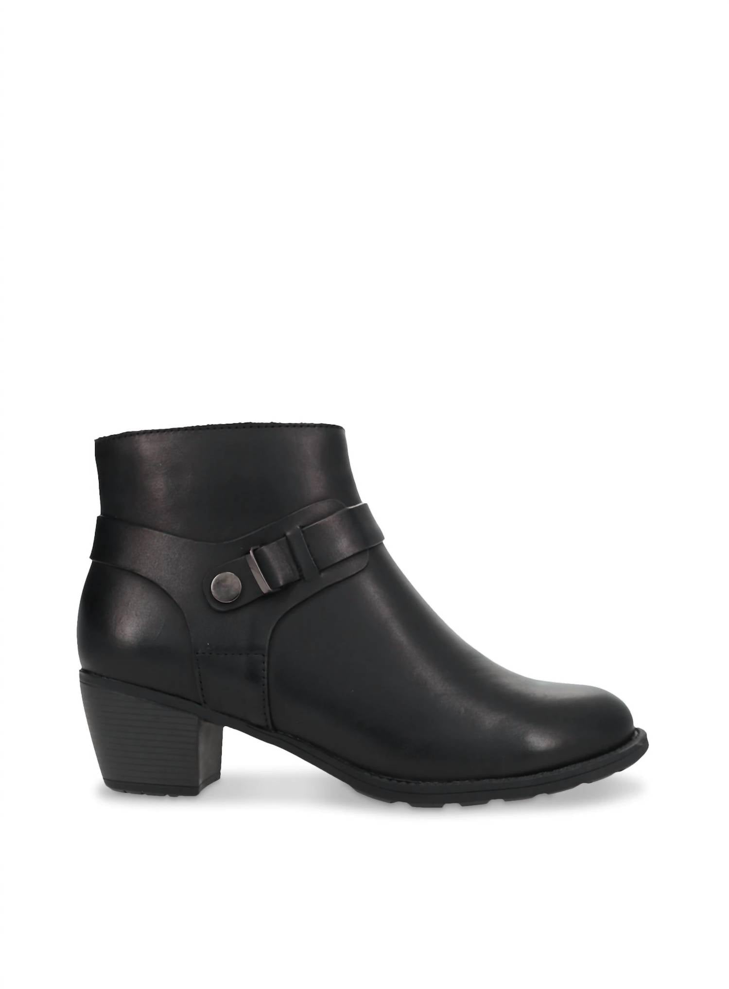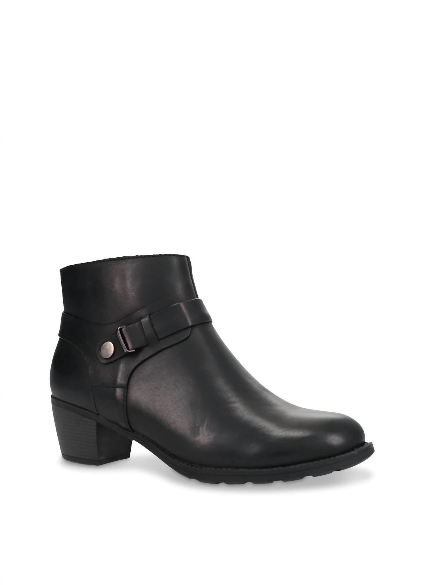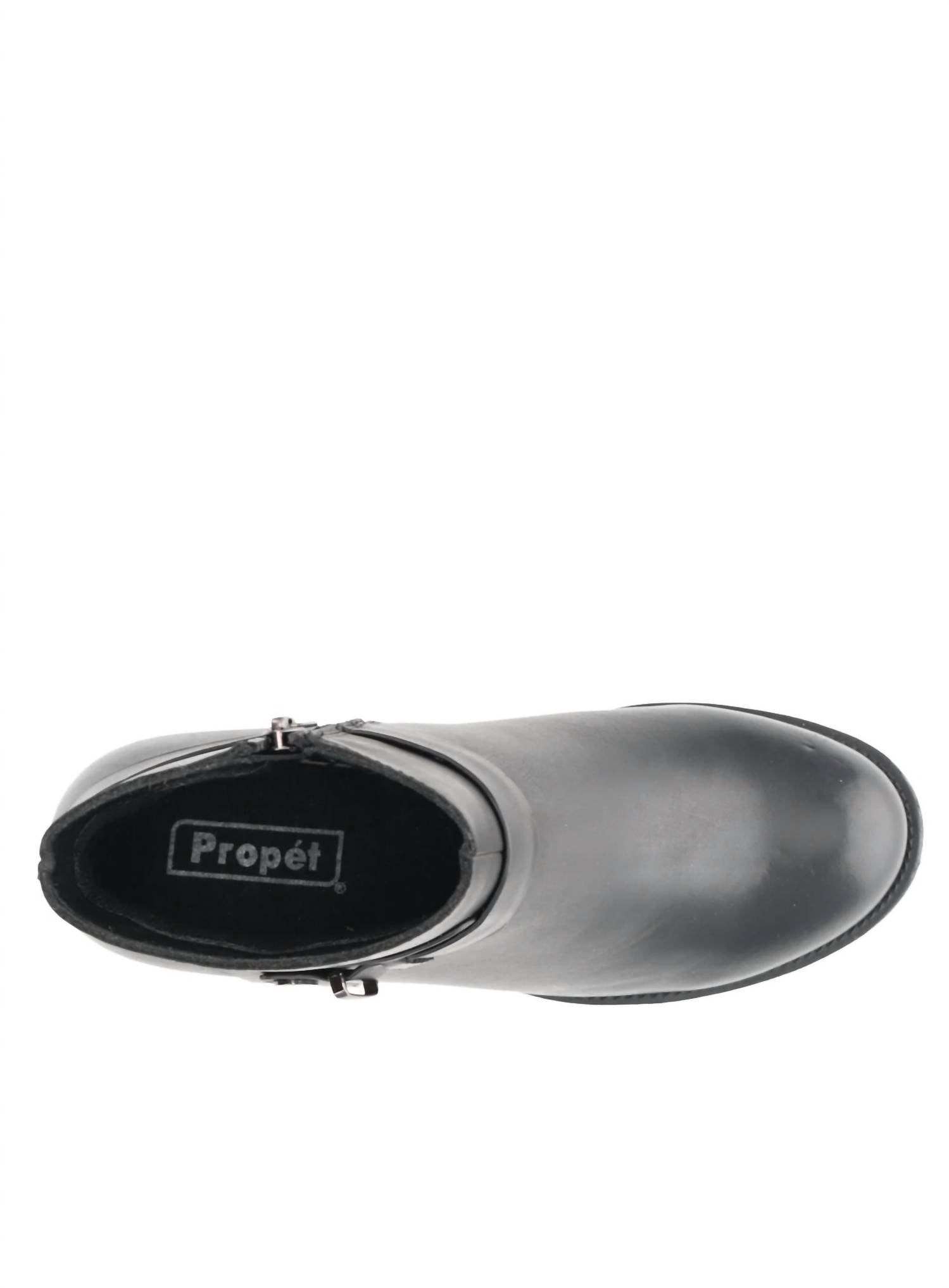 Say hello to the perfect, most versatile boot. The ankle height makes this style easily transition from day to night. Wear them with your favorite skinny jeans and tee for a more laid back look, or pair them with your favorite mini dress and jacket for a night out on the town.Polished and classy perfectly suits the Propet Topaz ankle bootie. Full-grain leather upper, strap accents with stud decorative, convenient inside zip, airy mesh lining, detachable rubber footbed and reliable rubber sole with block heel complete this zipper bootie in style.