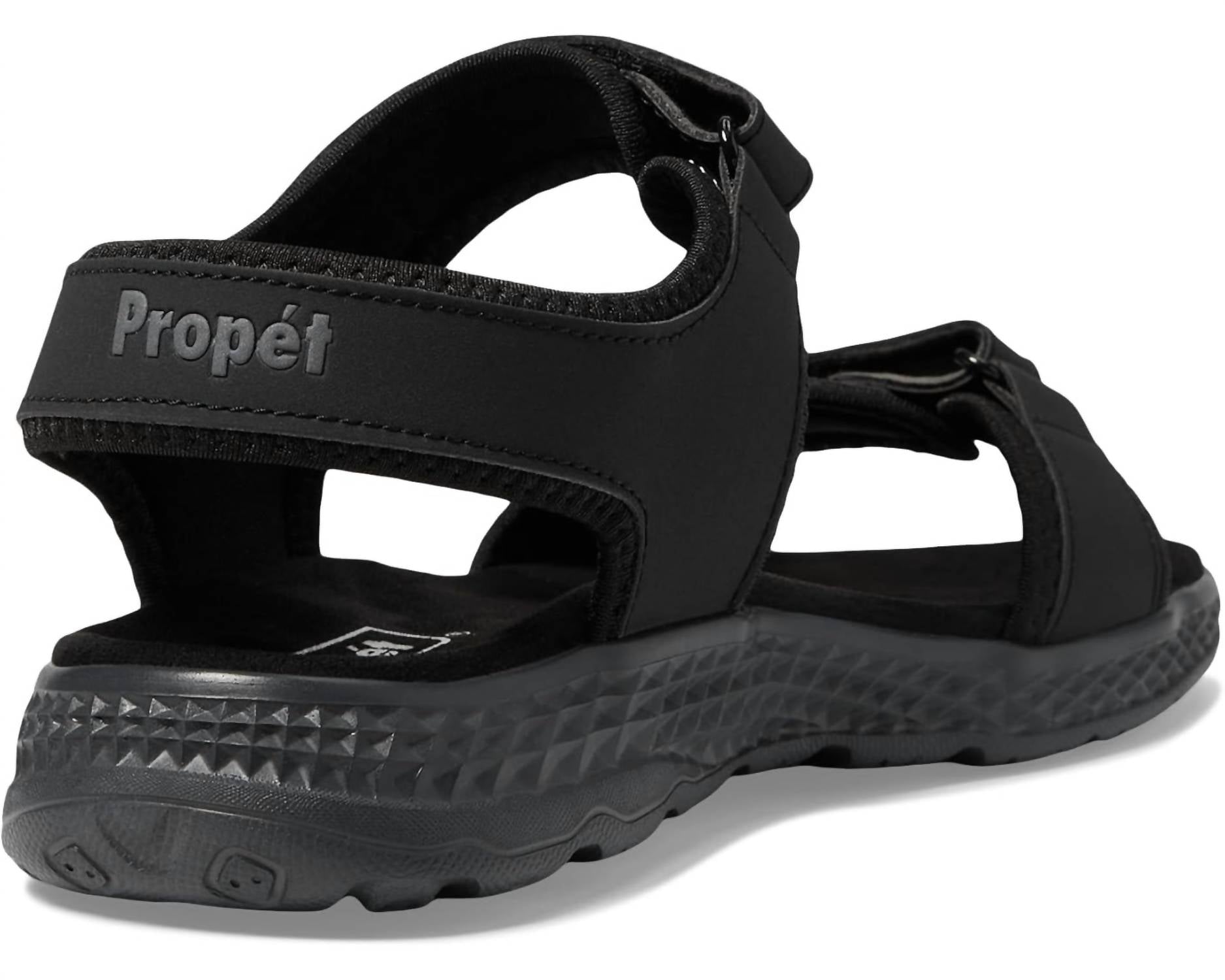 Step into comfort and style with the Women's Aspire Sandal by PROPET in sleek black. These sandals feature adjustable straps with a hook-and-loop closure, ensuring a perfect fit, and are crafted with a durable PU upper. The lightweight design includes a cushioned EVA footbed and foam insole, providing all-day comfort, while the 1.5-inch heel height and EVA outsole offer superior traction on any terrain. Ideal for summer adventures, these sandals showcase an open toe and flat heel design.