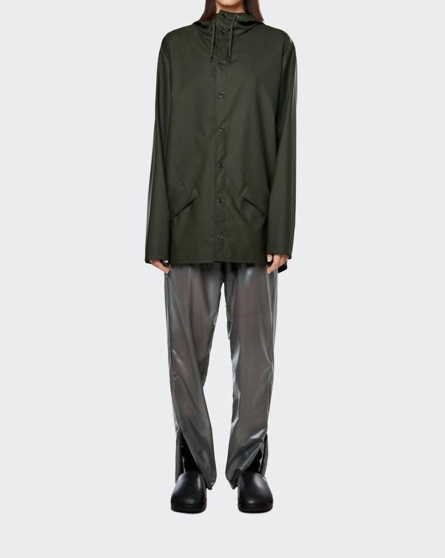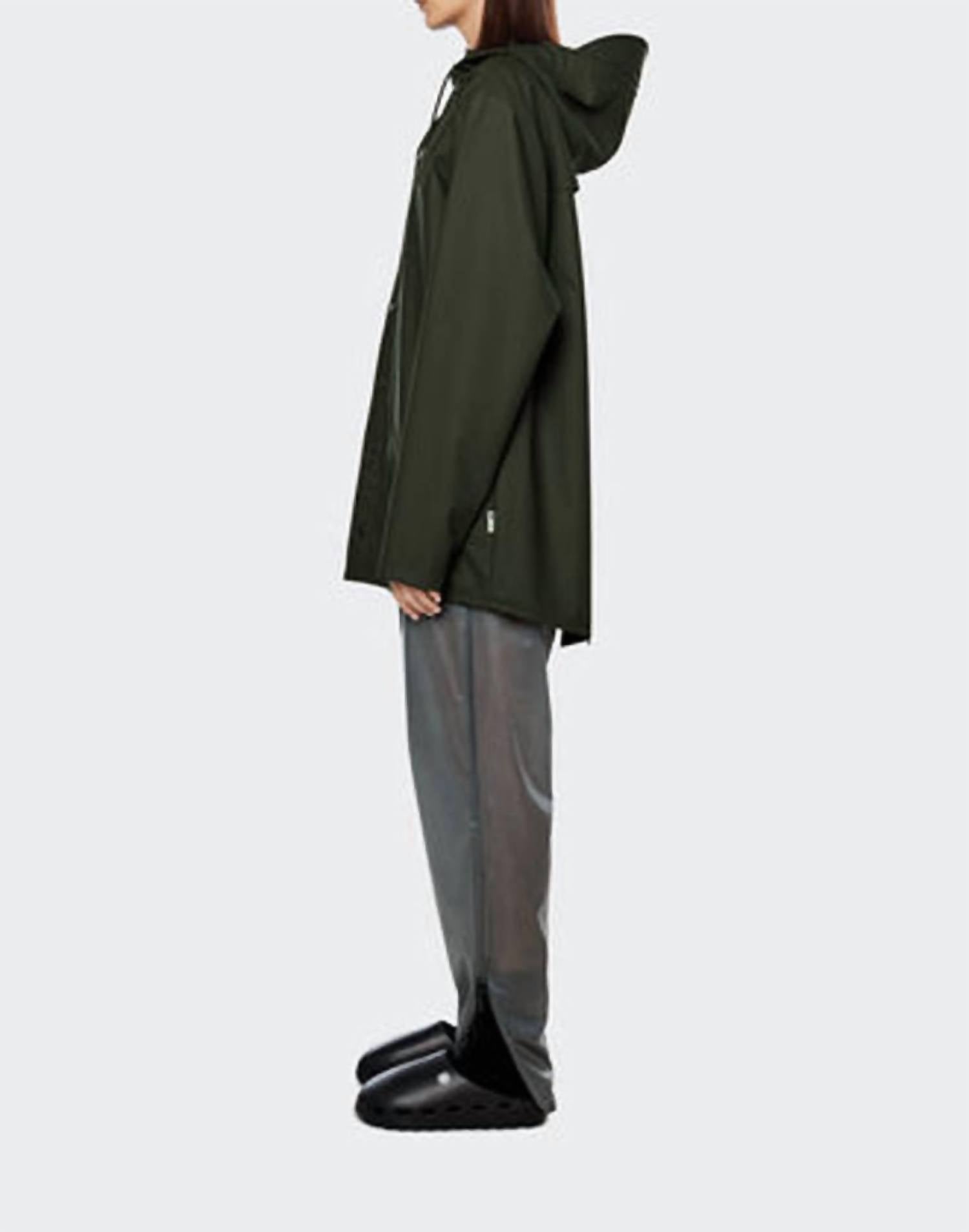 Meet the Rains Rain Jacket—a quintessential blend of function and fashion for any rainy day. This unisex long sleeve jacket in a refreshing green hue boasts a thoughtful composition of 64% polyester and 36% polyurethane, offering a water-resistant, matte, and smooth finish. Further enhanced by classic Rains details like a storm shield and adjustable hood with a cap function, this jacket is effortlessly urban. Proudly imported, this casual jacket is designed to be both stylish and practical, complete with pockets for added convenience. Model is 5'9" (177cm) and wears a size M.