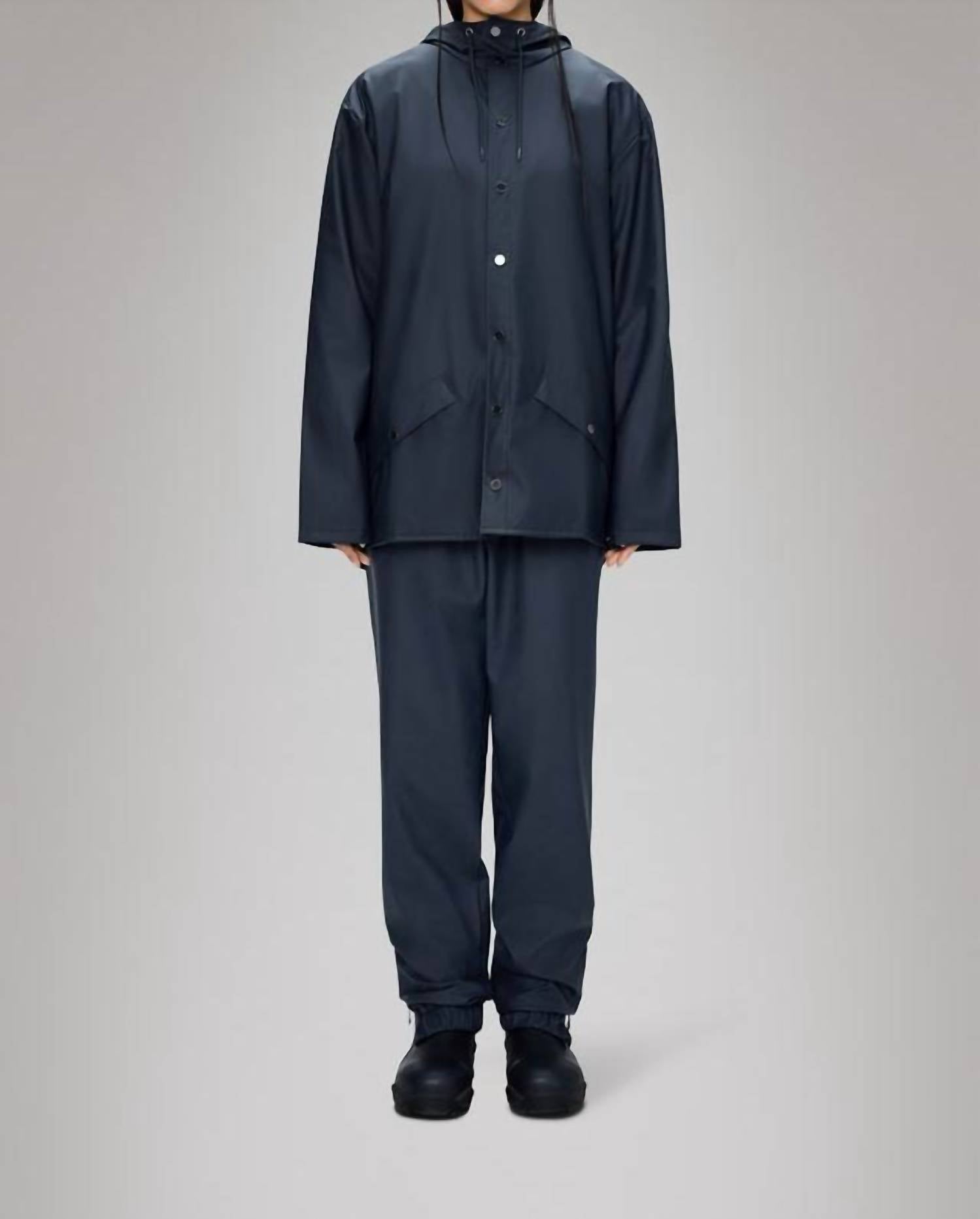 Elevate your vacation wardrobe with the Women's Rain Jacket by Rains, designed in a sophisticated navy hue. This minimalist, solid-pattern jacket features long sleeves and a hooded neckline, making it a perfect choice for summer trips. Closure: Zip closure. Embrace the sleek style while staying dry during your adventures.